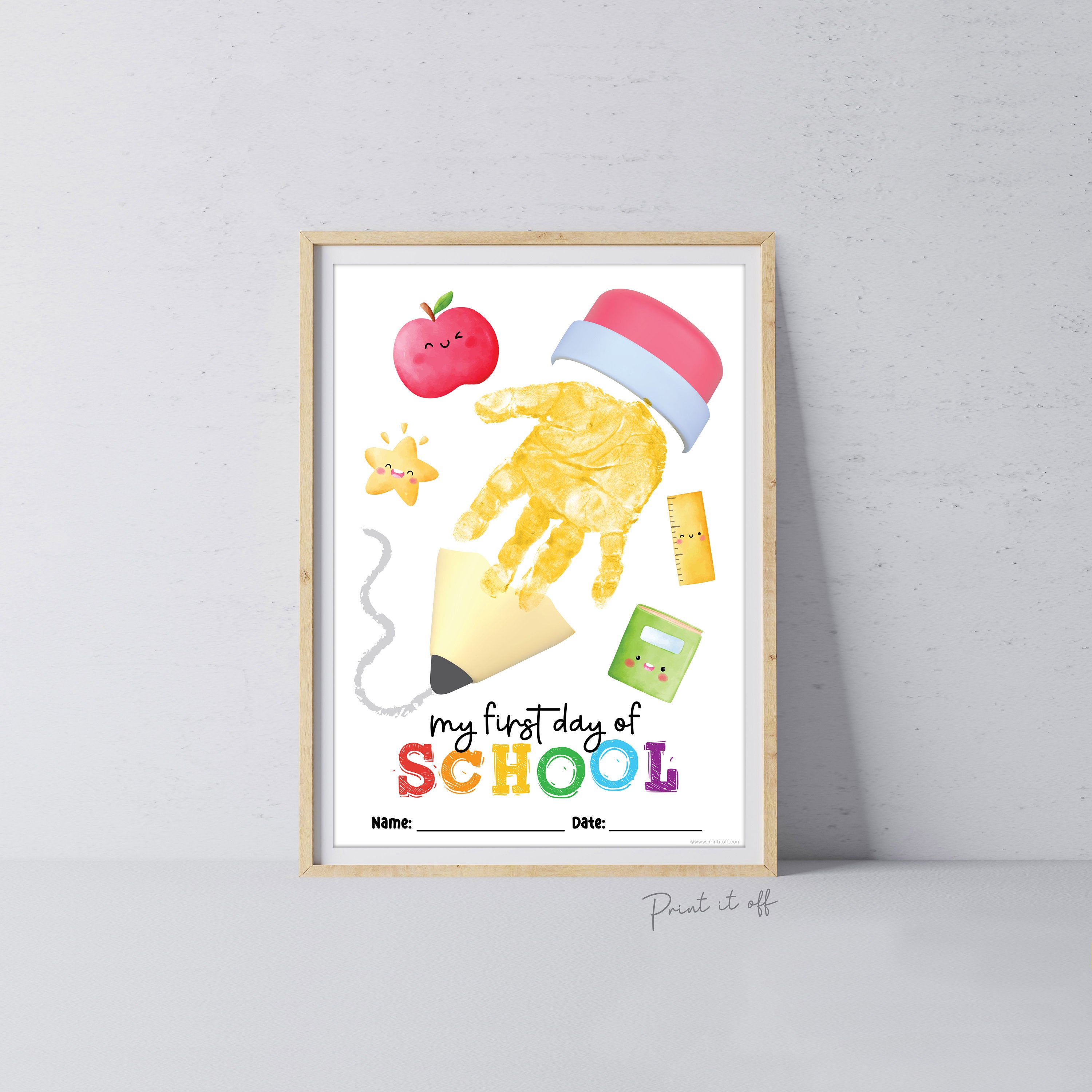 1st First Day School Pencil / Kindergarten Pre-K Daycare Pre-School / Handprint DIY Art Craft Template Teacher / Print it Off 0896