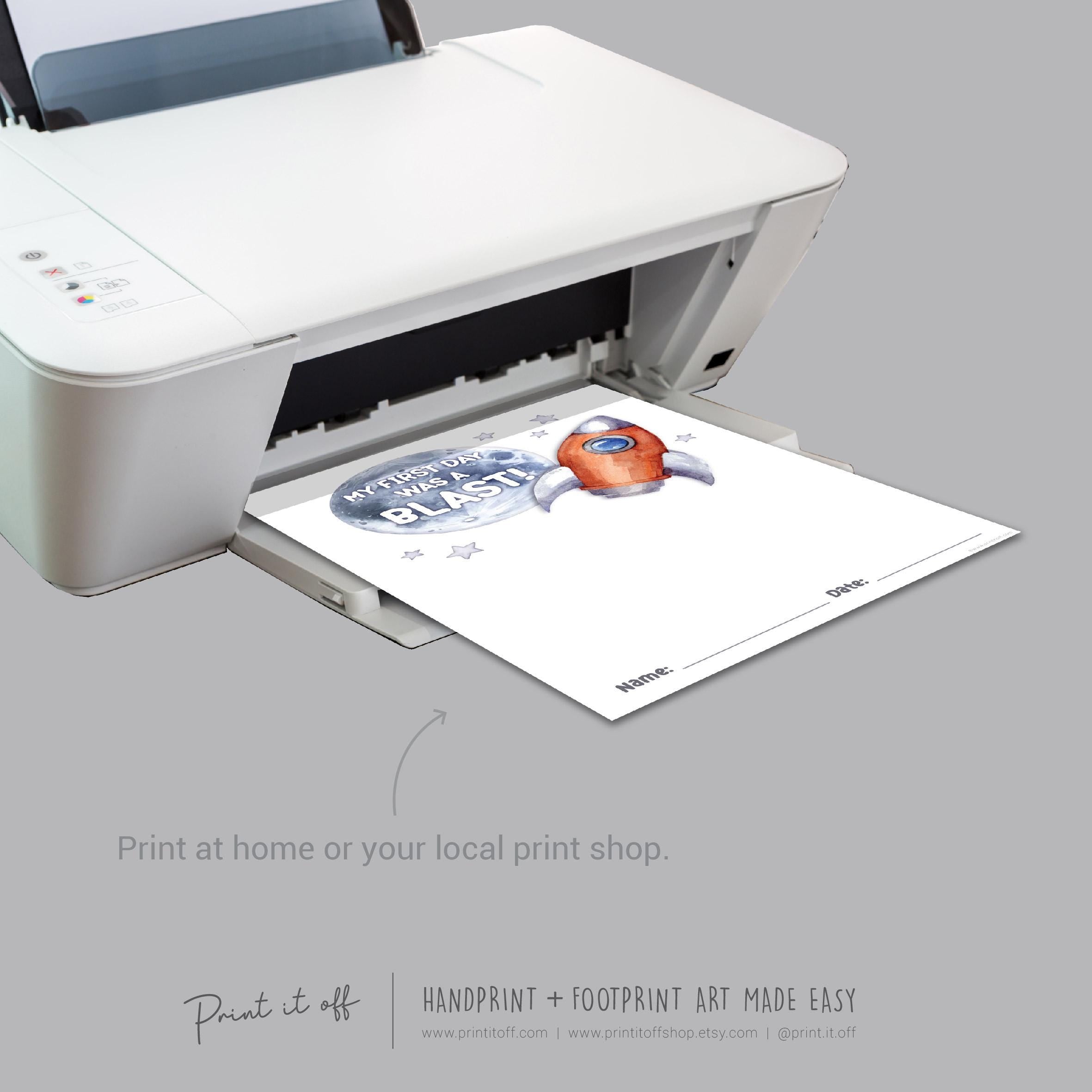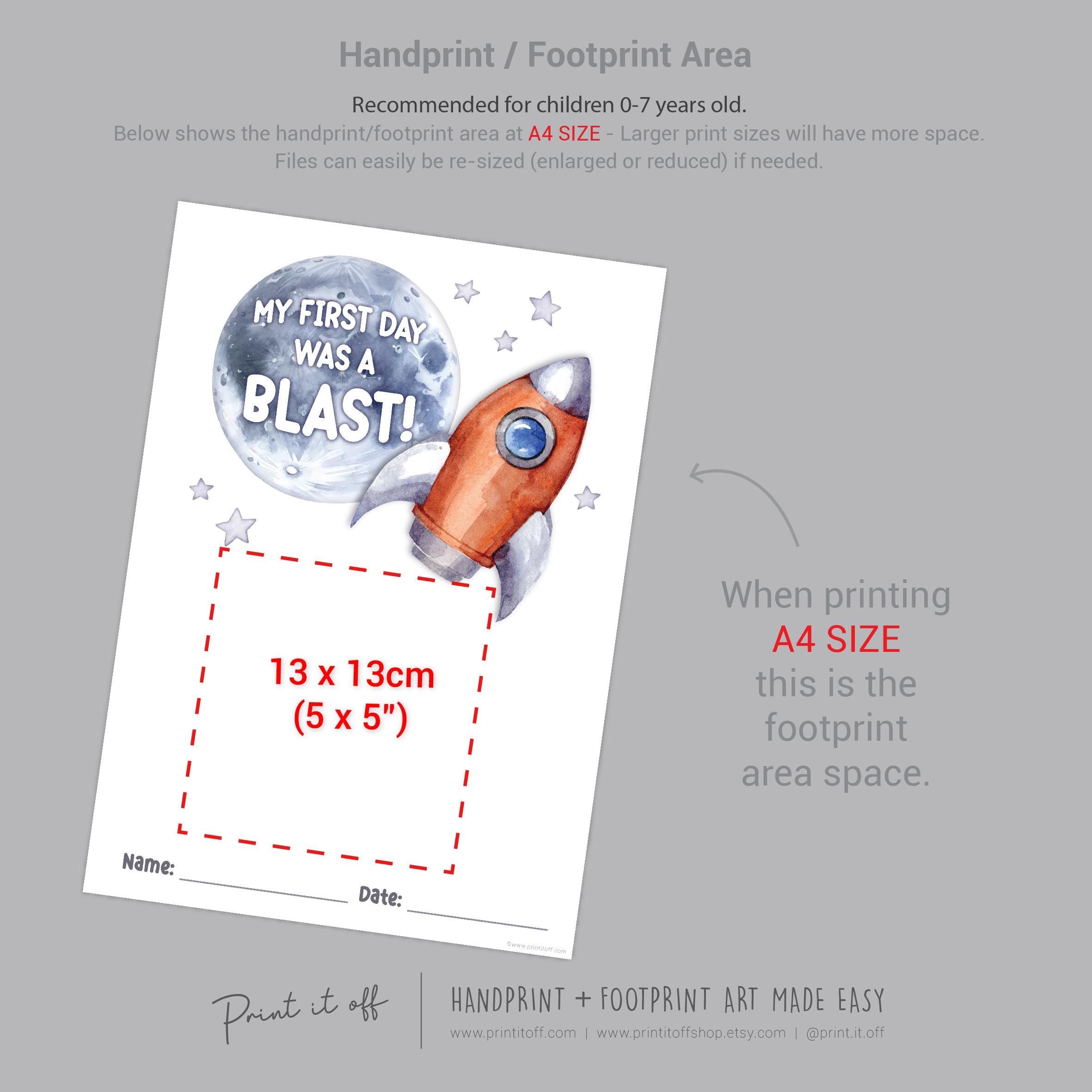 First Day School Rocket - Handprint Art Craft Printable Keepsake Gift Template - PRINT IT OFF 0902