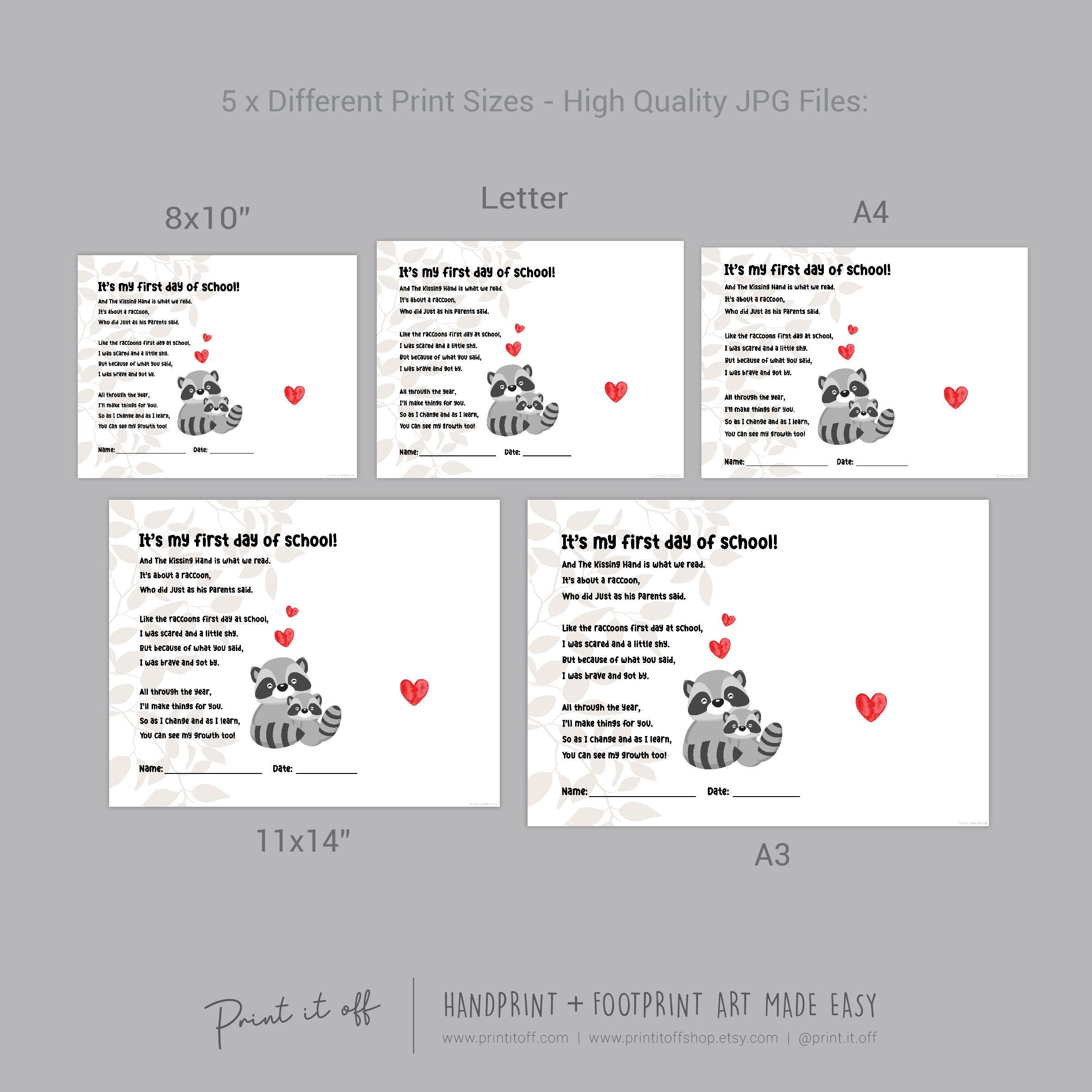 The Kissing Hand Raccoon School - Handprint Art Craft Printable Keepsake Gift Template - PRINT IT OFF 0899