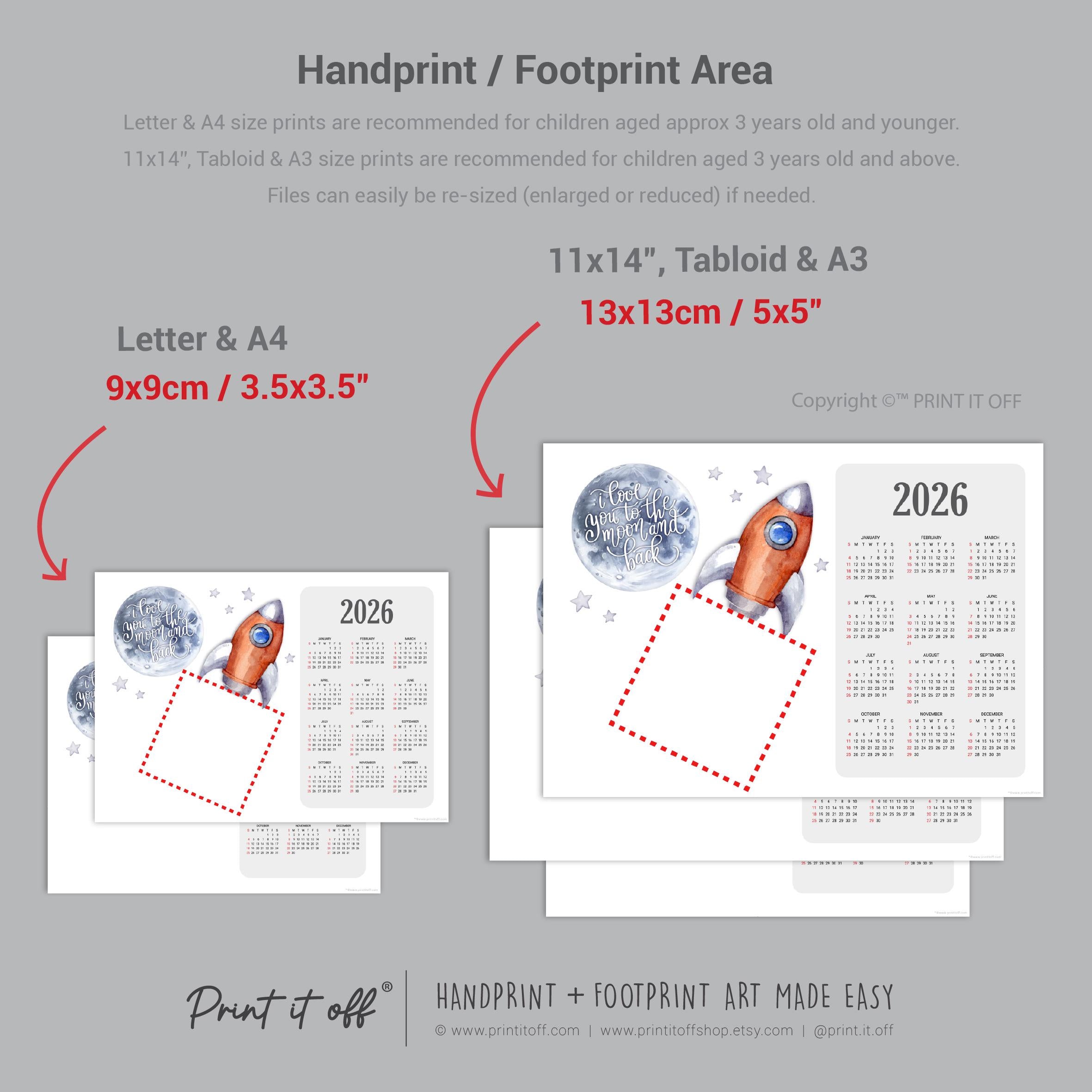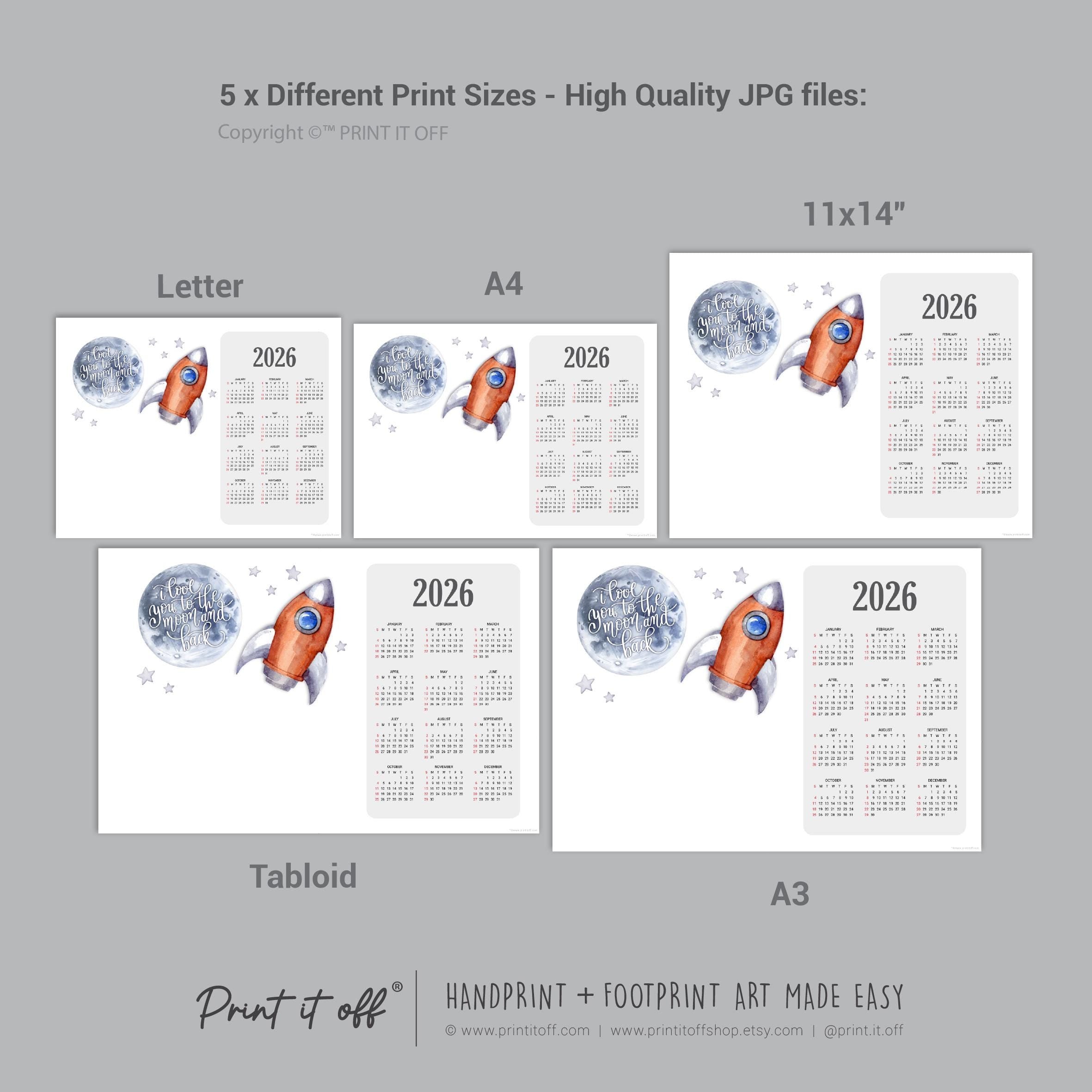 2026 Moon & Back Calendar Year - Handprint Art Craft Printable Keepsake Gift Template - PRINT IT OFF 0908