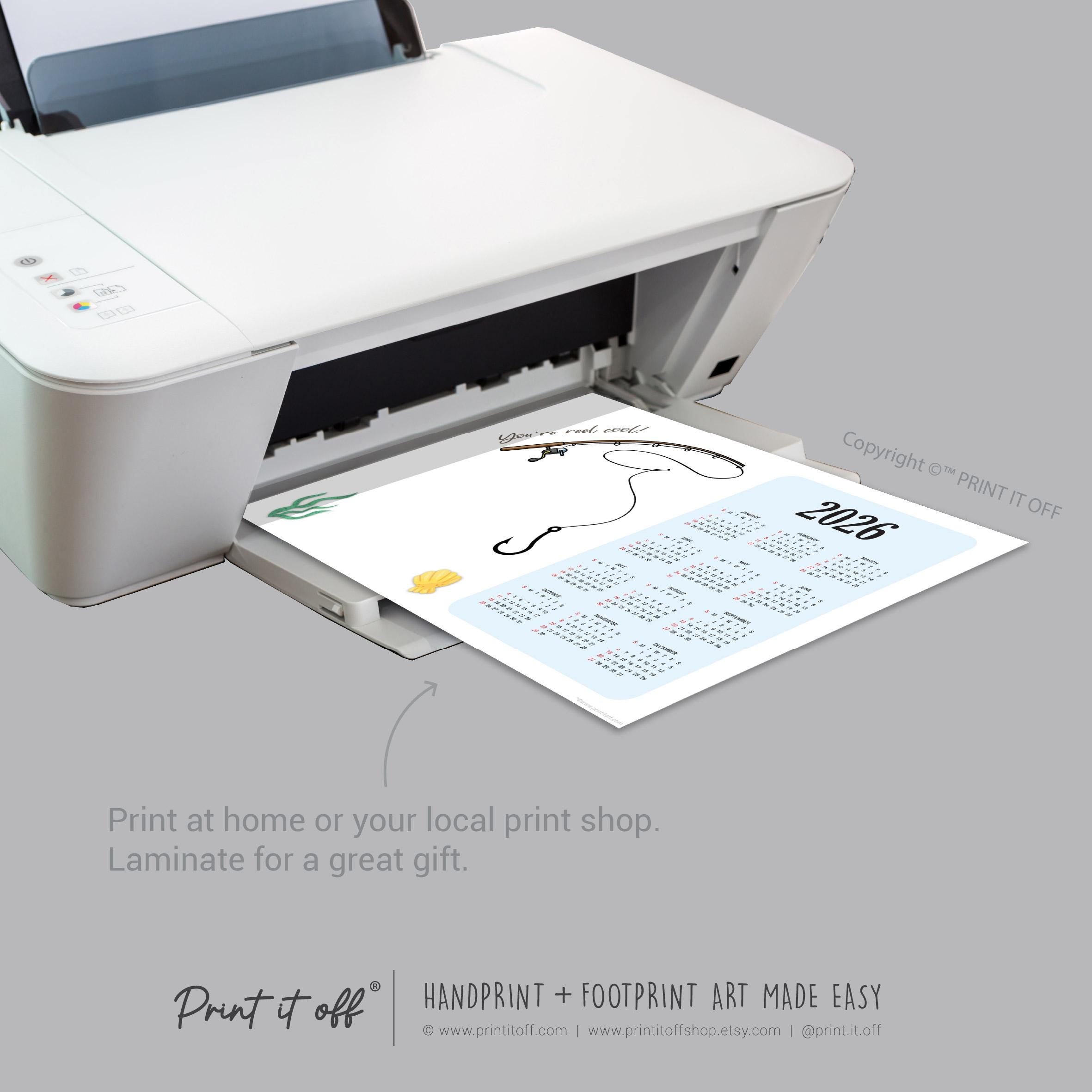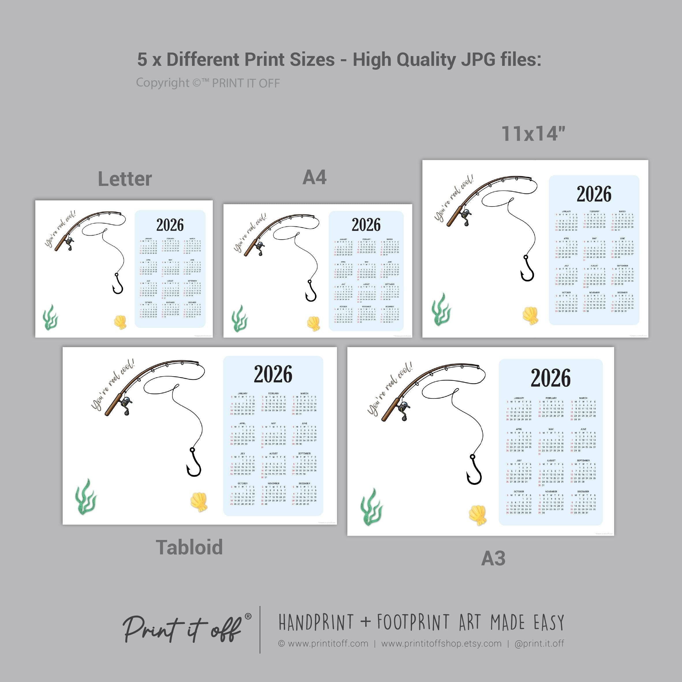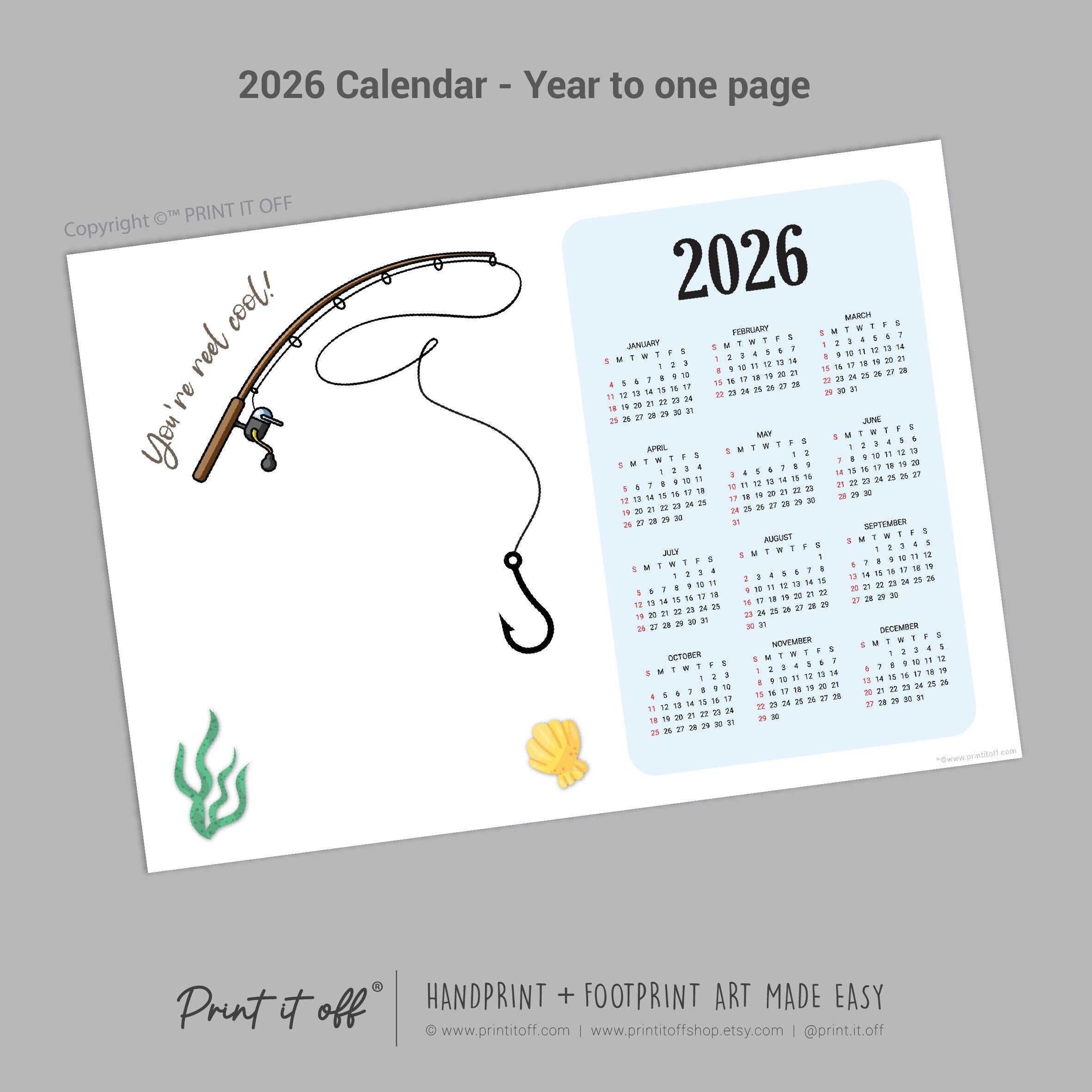 Fish 2026 Calendar Year - Handprint Art Craft Printable Keepsake Gift Template - PRINT IT OFF 0911