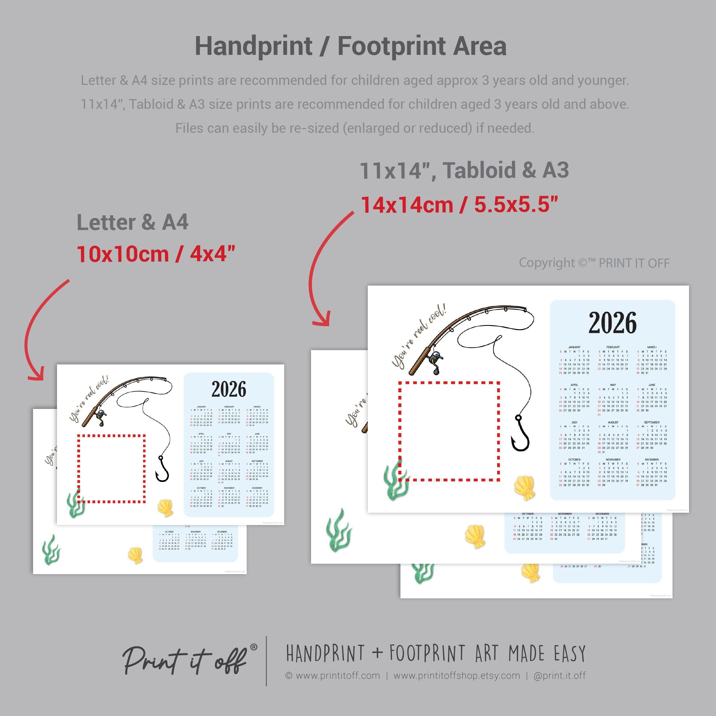 2026 Fish Year Yearly Calendar / Handprint Footprint Art Craft / Activity DIY Gift Keepsake Template Preschool / Print It Off 0911