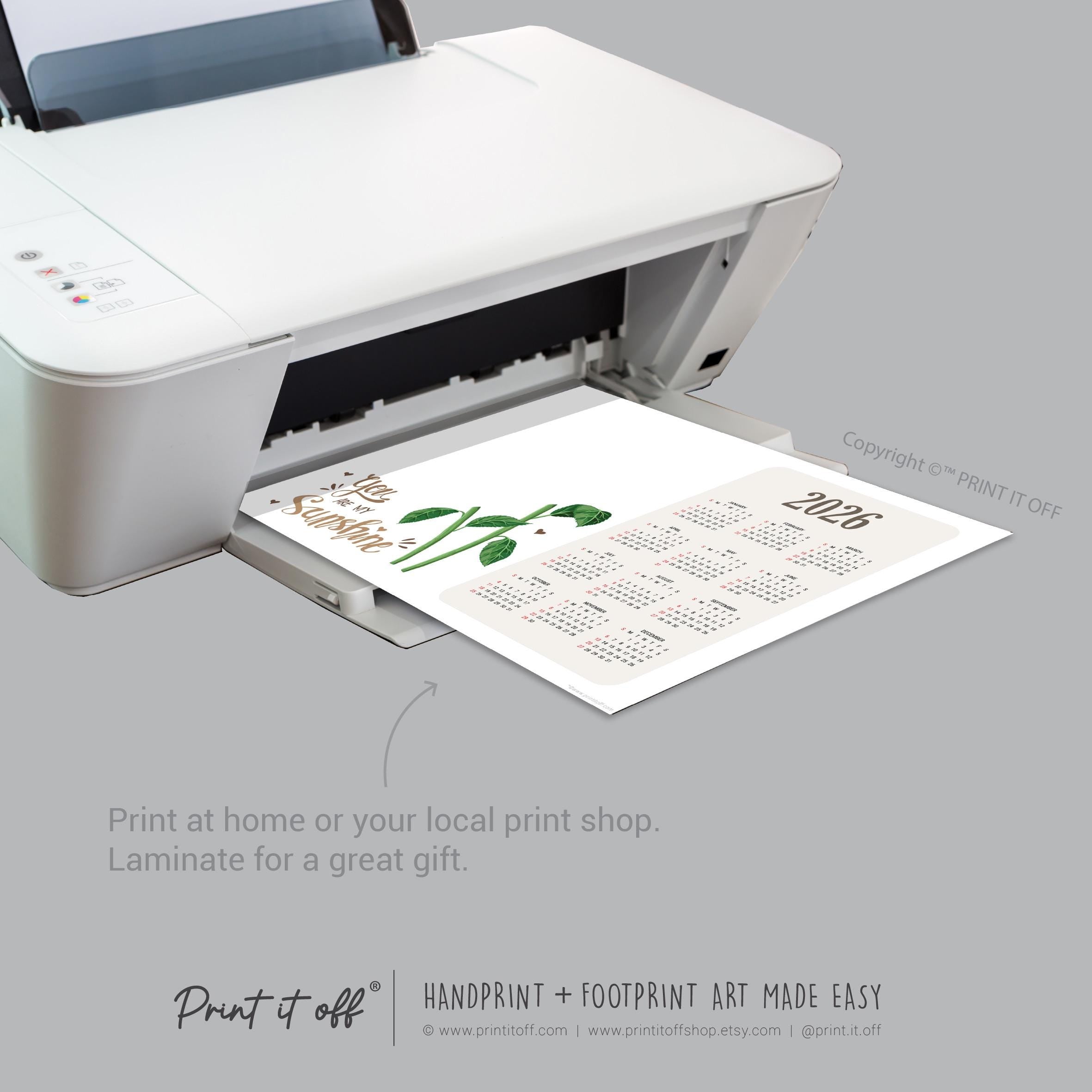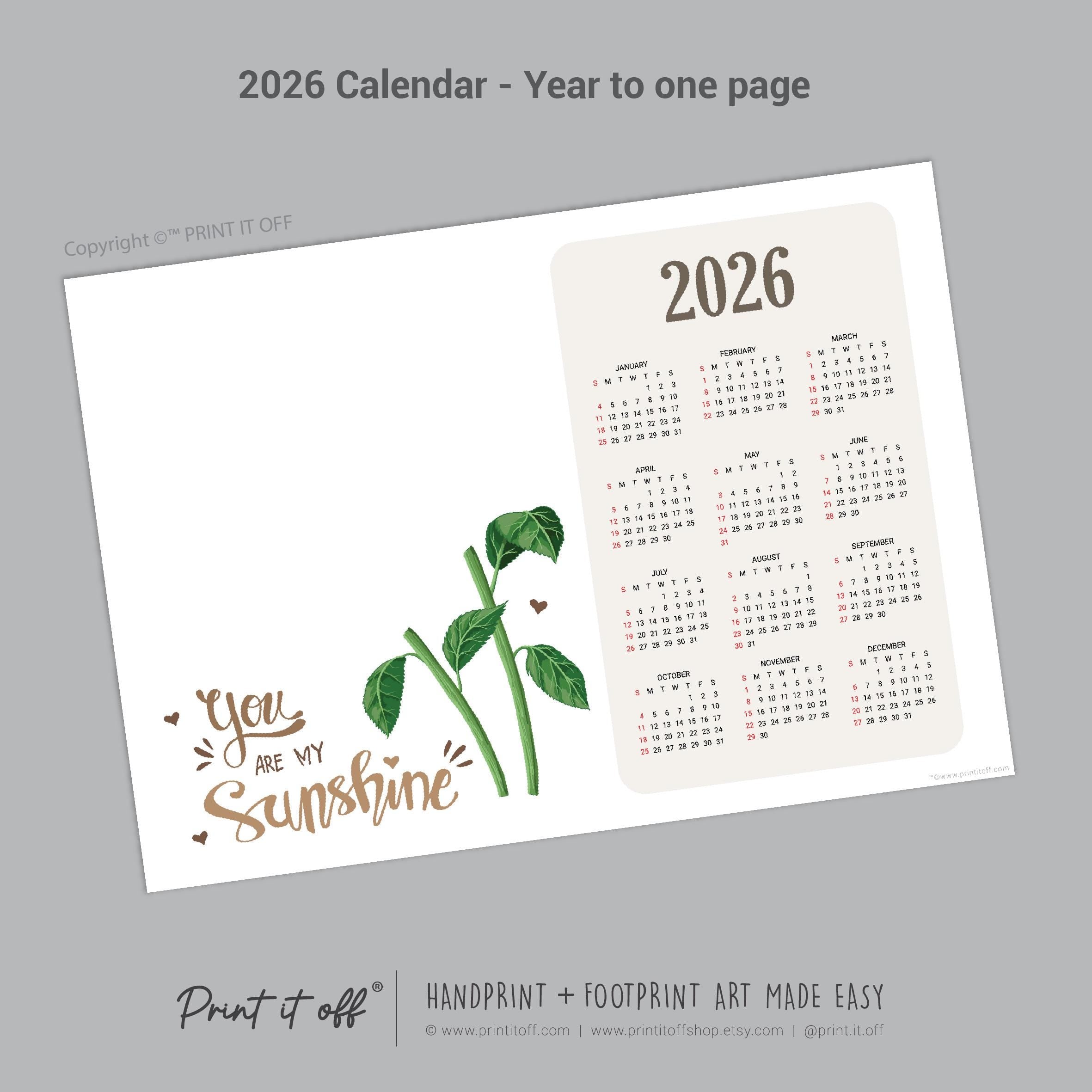 Sunflower 2026 Calendar Year - Handprint Art Craft Printable Keepsake Gift Template - PRINT IT OFF 0907