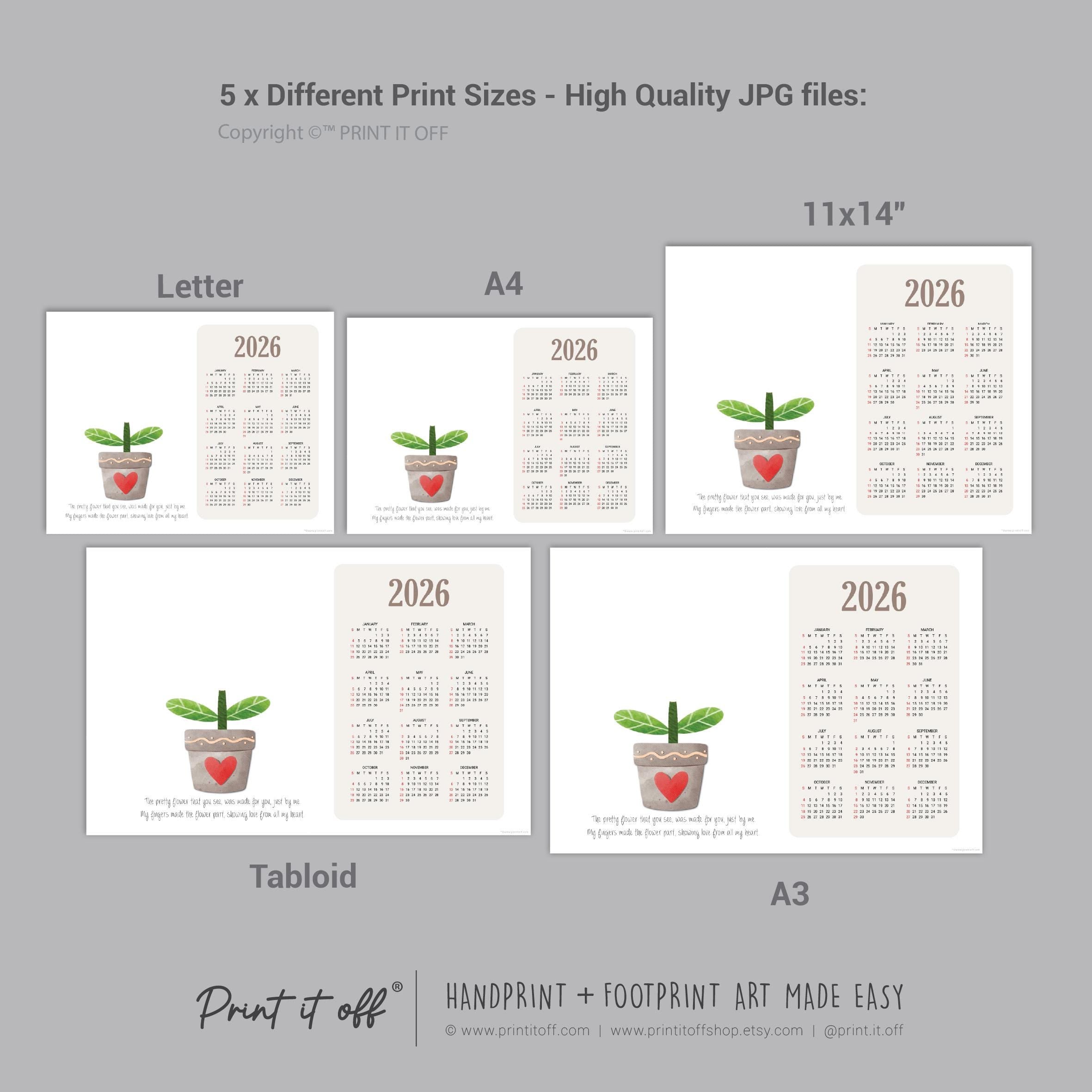 2026 Flower Calendar Year Yearly / Handprint Footprint Art Craft / Activity DIY Gift Keepsake / Baby Kids Child Toddler / Print It Off 0910