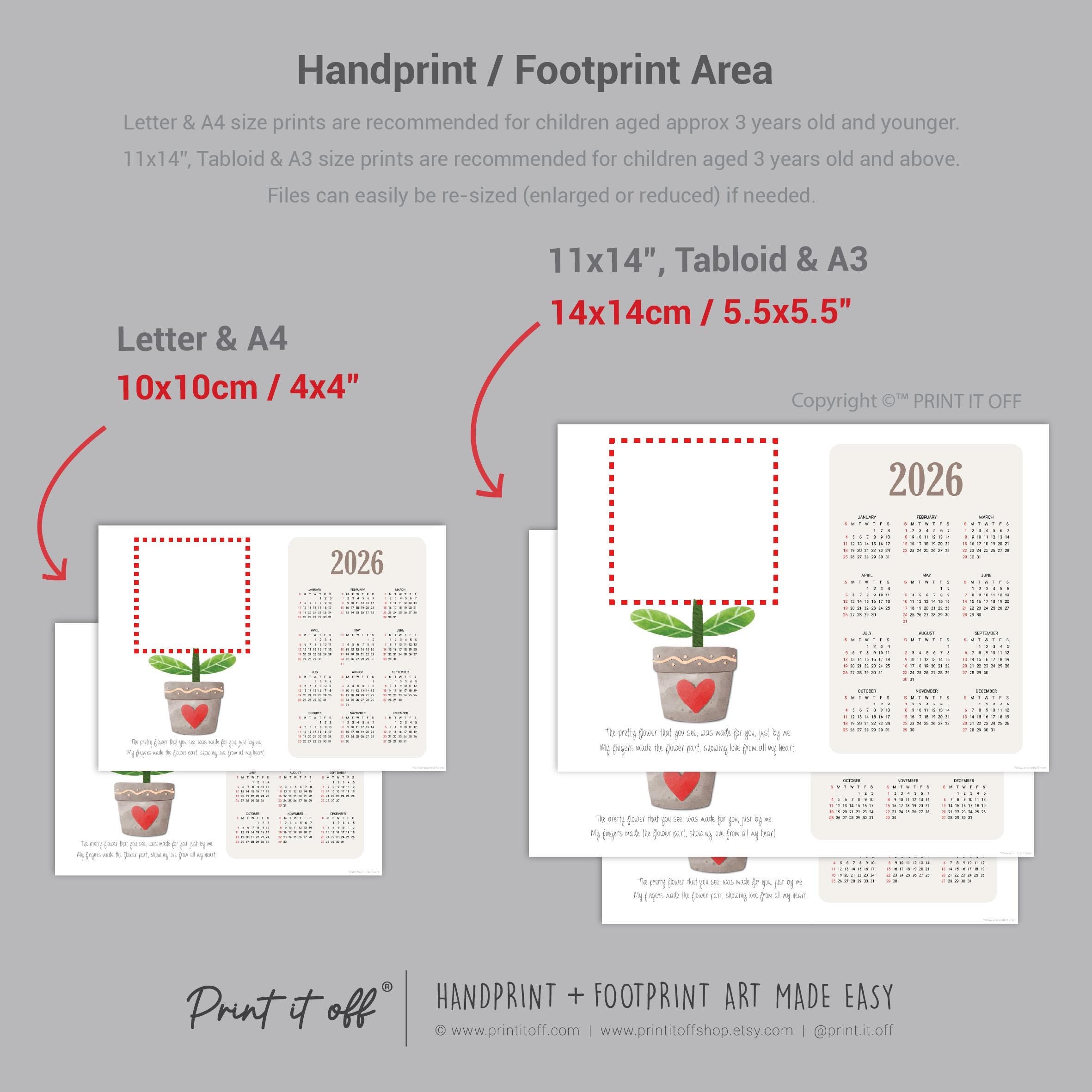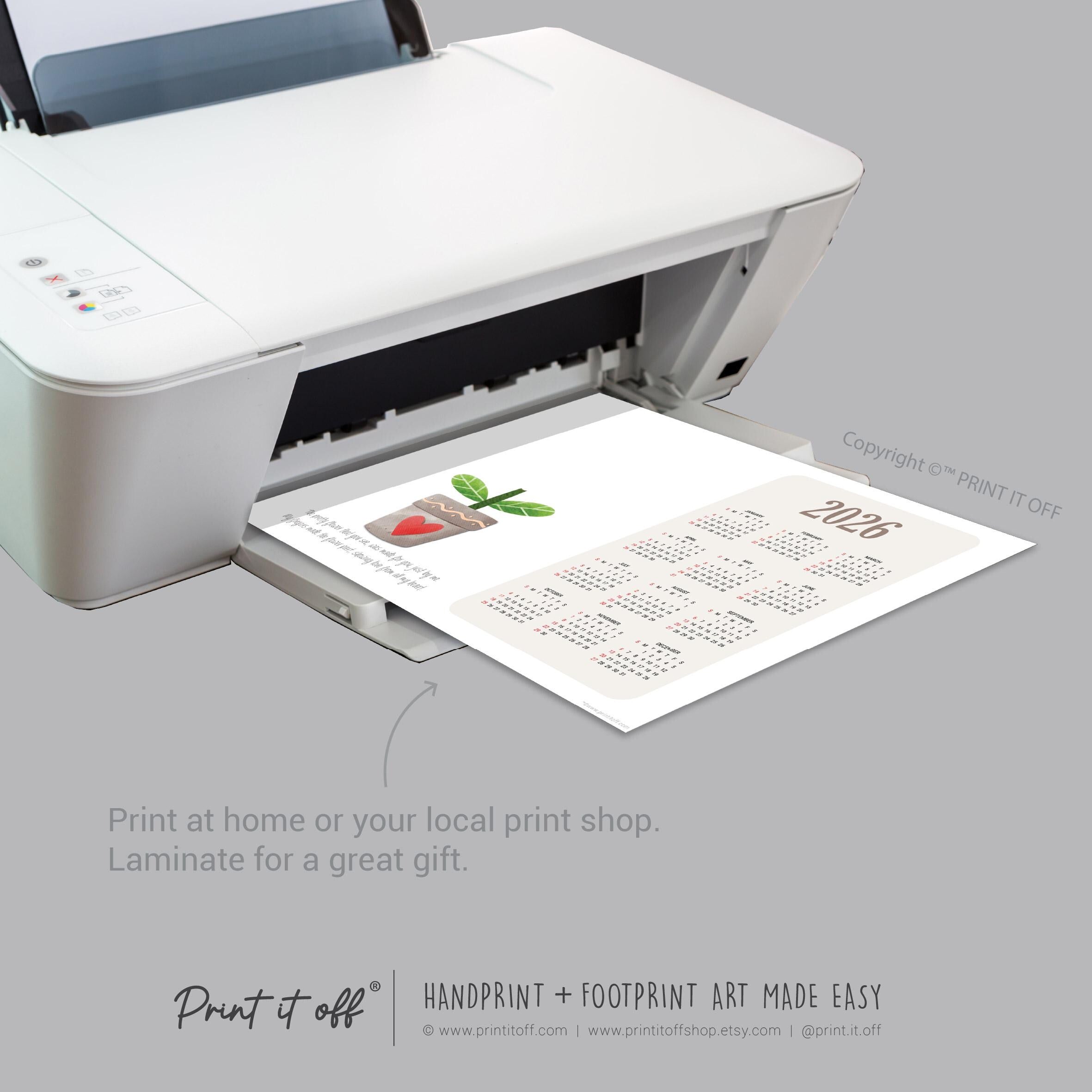 Flower 2026 Calendar Year - Handprint Art Craft Printable Keepsake Gift Template - PRINT IT OFF 0910