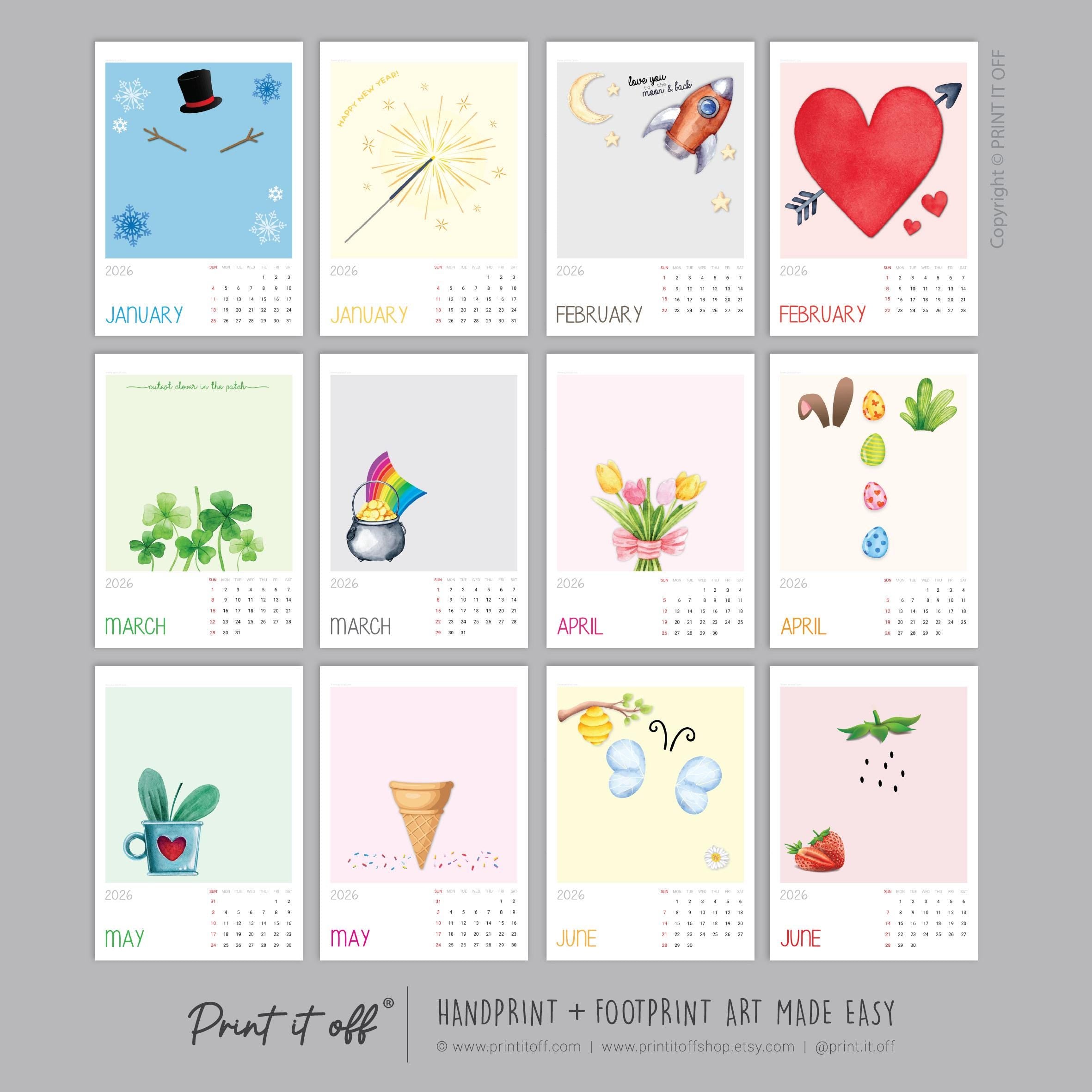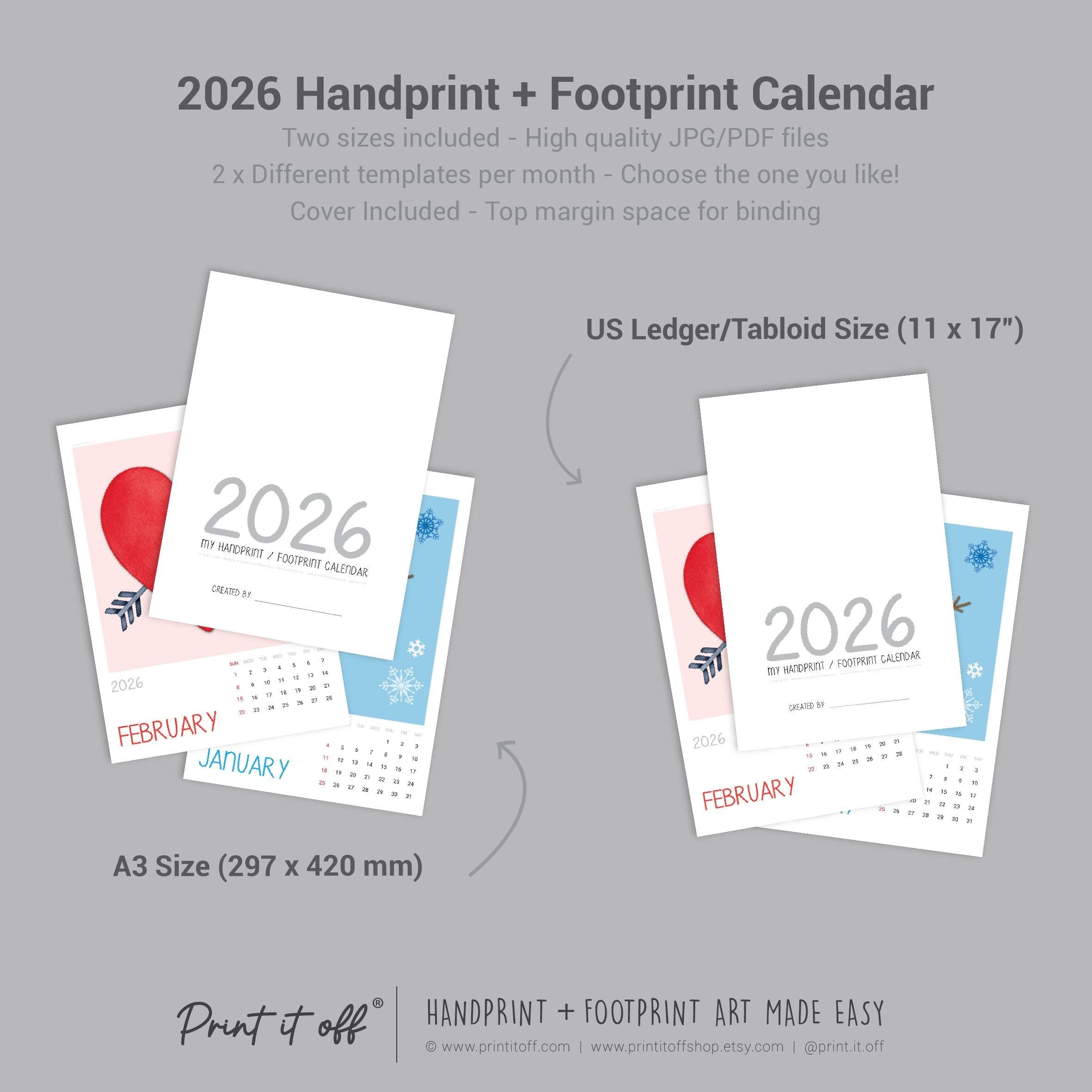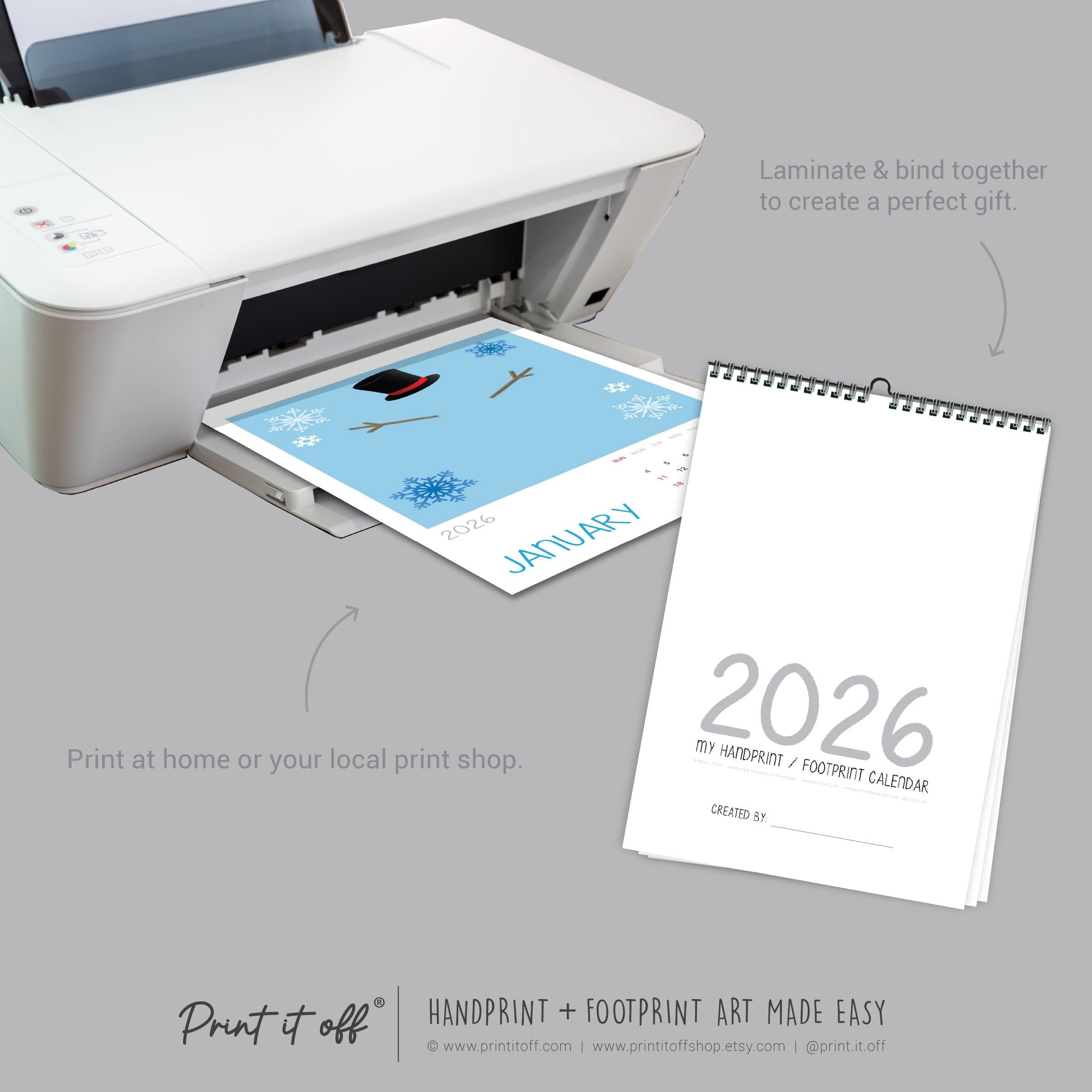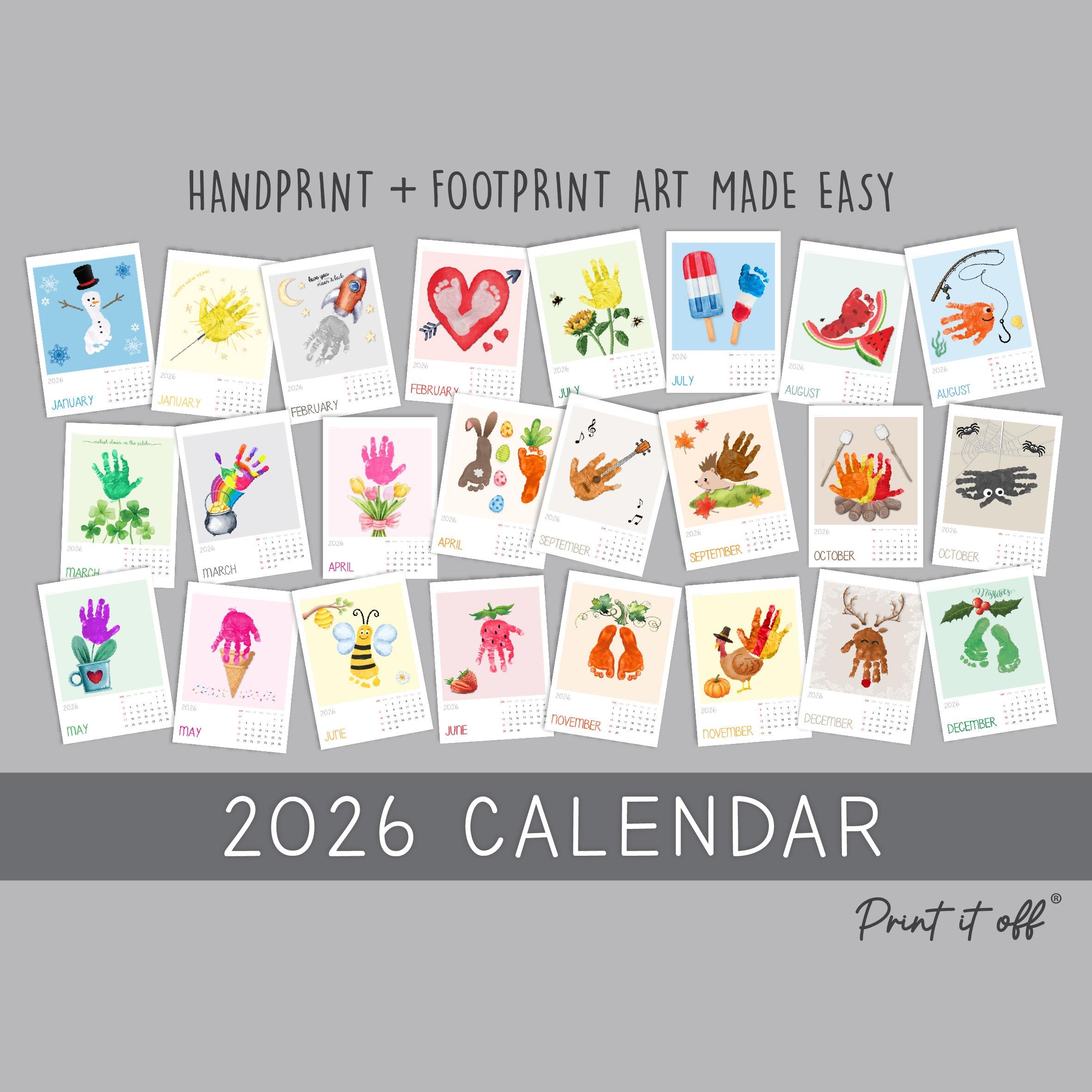 2026 Handprint Footprint Calendar Art Craft / DIY Gift Child Baby Kids Toddler Activity Memory Keepsake / Print It Off 0944