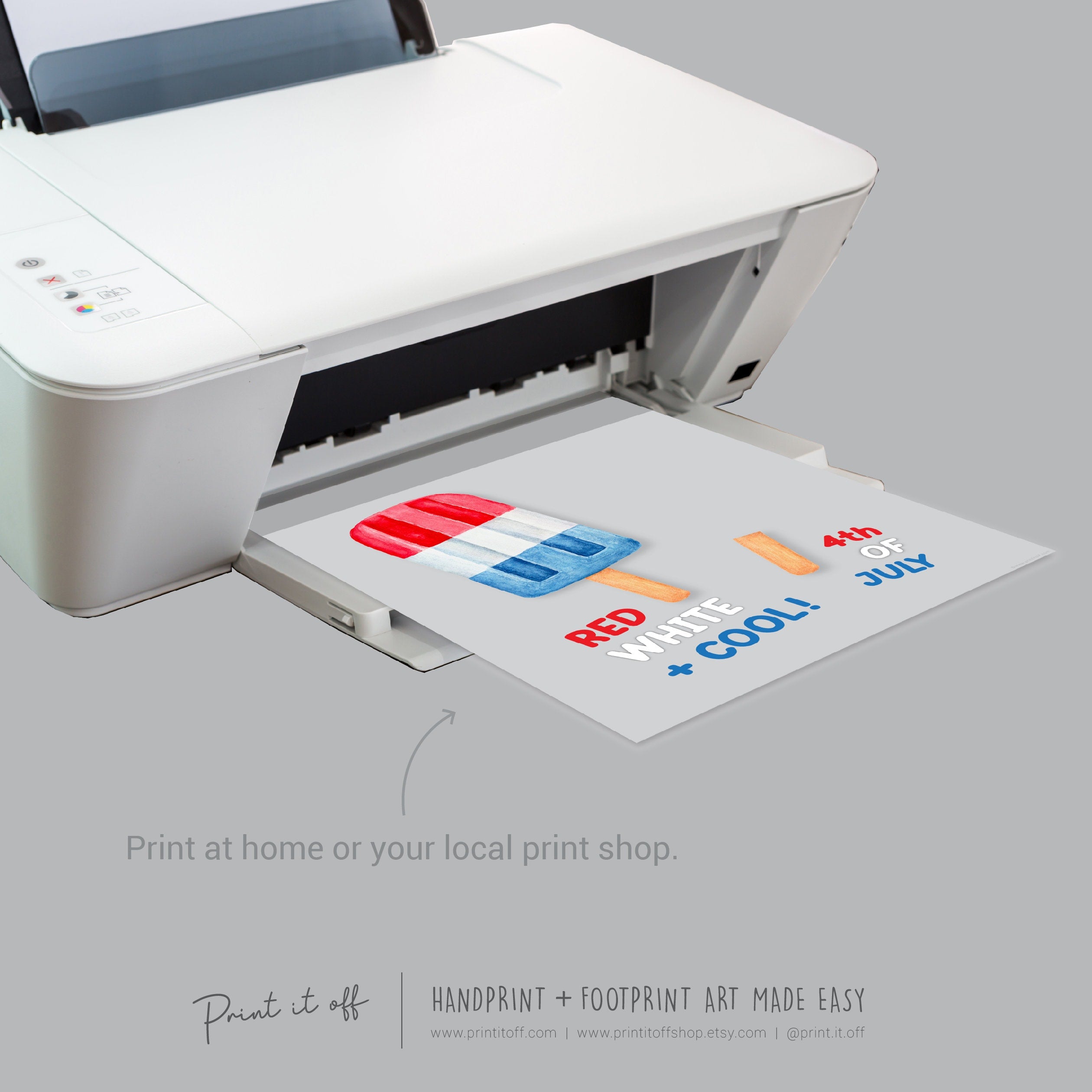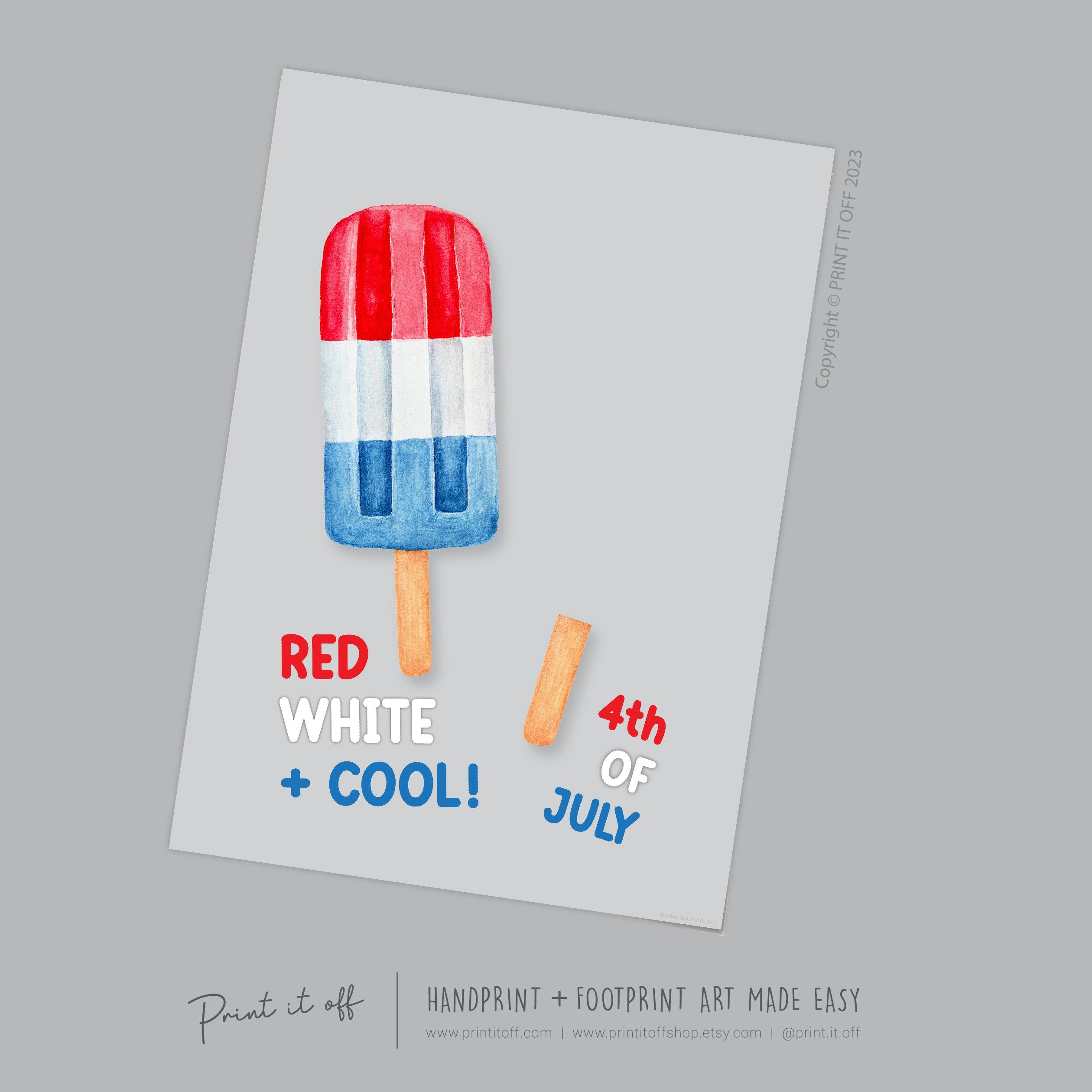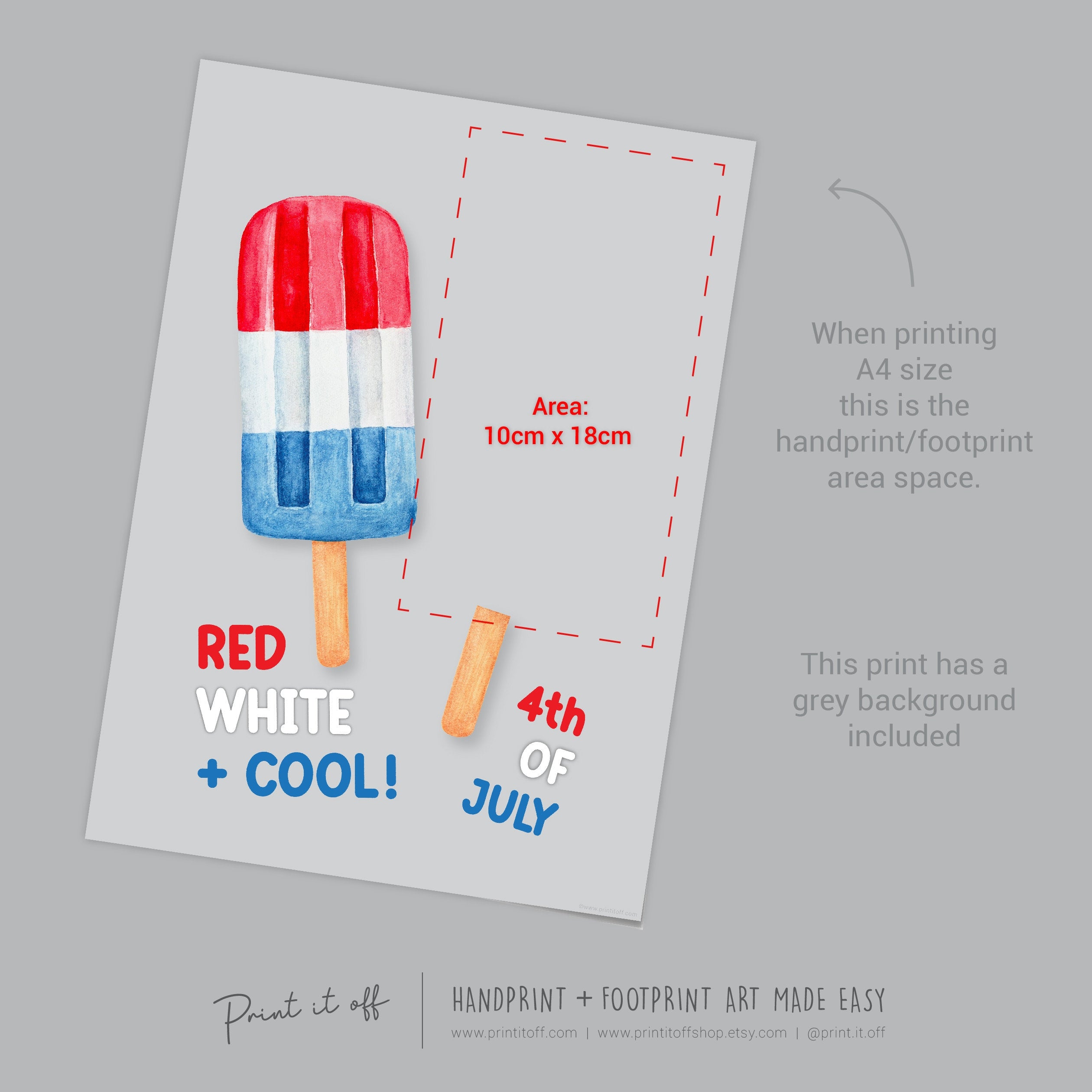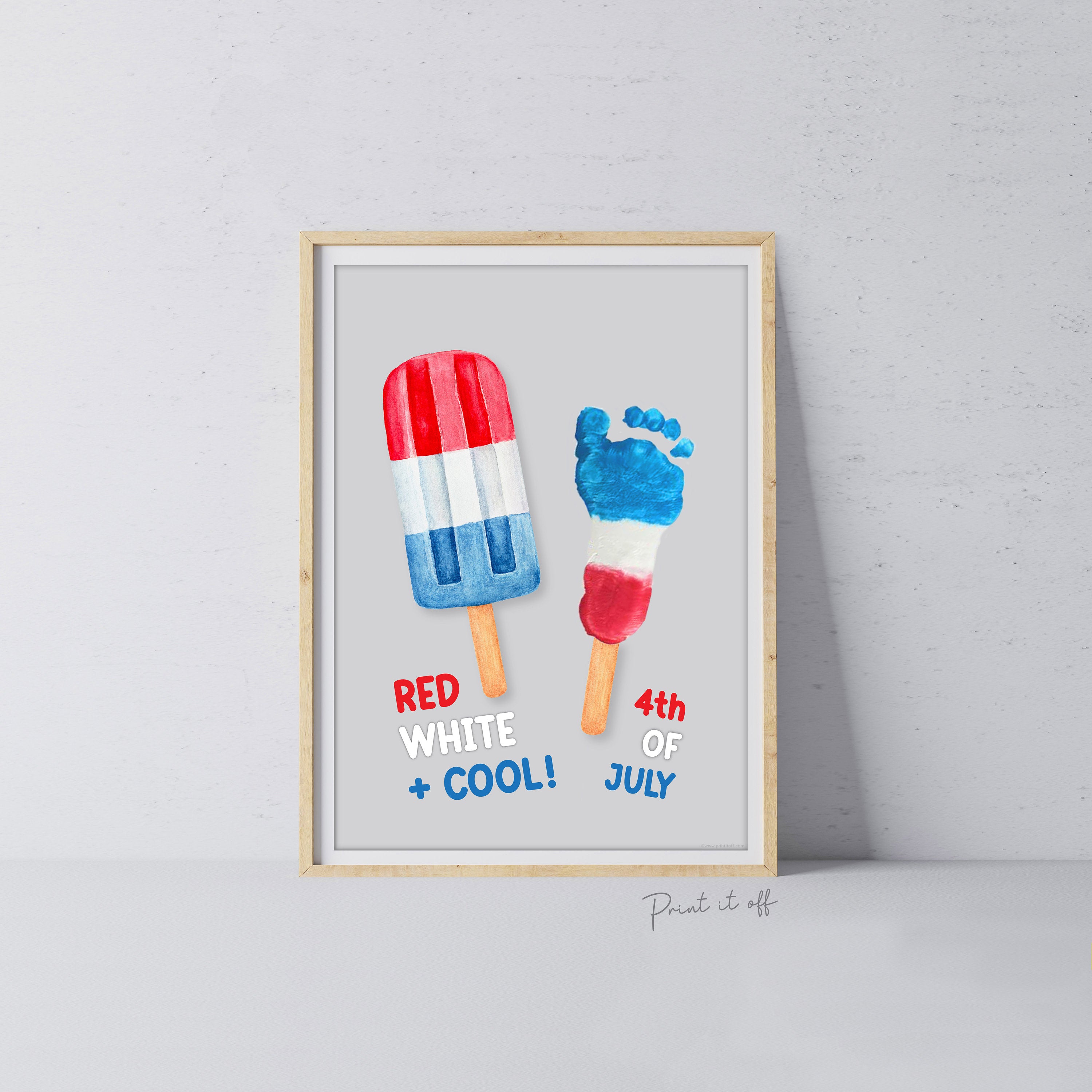 4th of July Independence Day / Footprint Handprint Craft Art / USA America / Kids Baby Toddler Keepsake Memory Card / Print It Off 0518