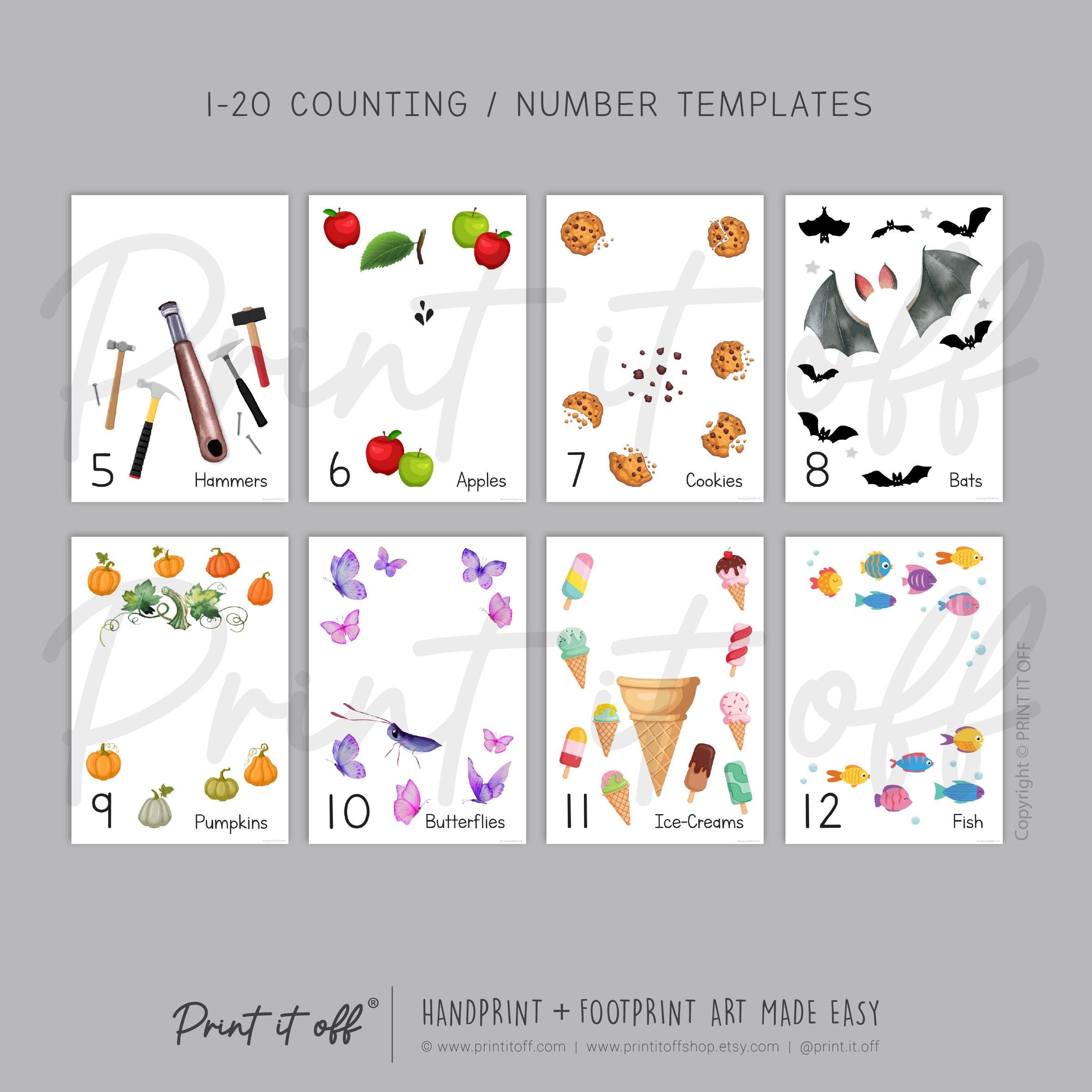 Counting Numbers 1 - 20 Learning - Handprint Footprint Art Craft Printable Keepsake Gift Template - PRINT IT OFF 0969