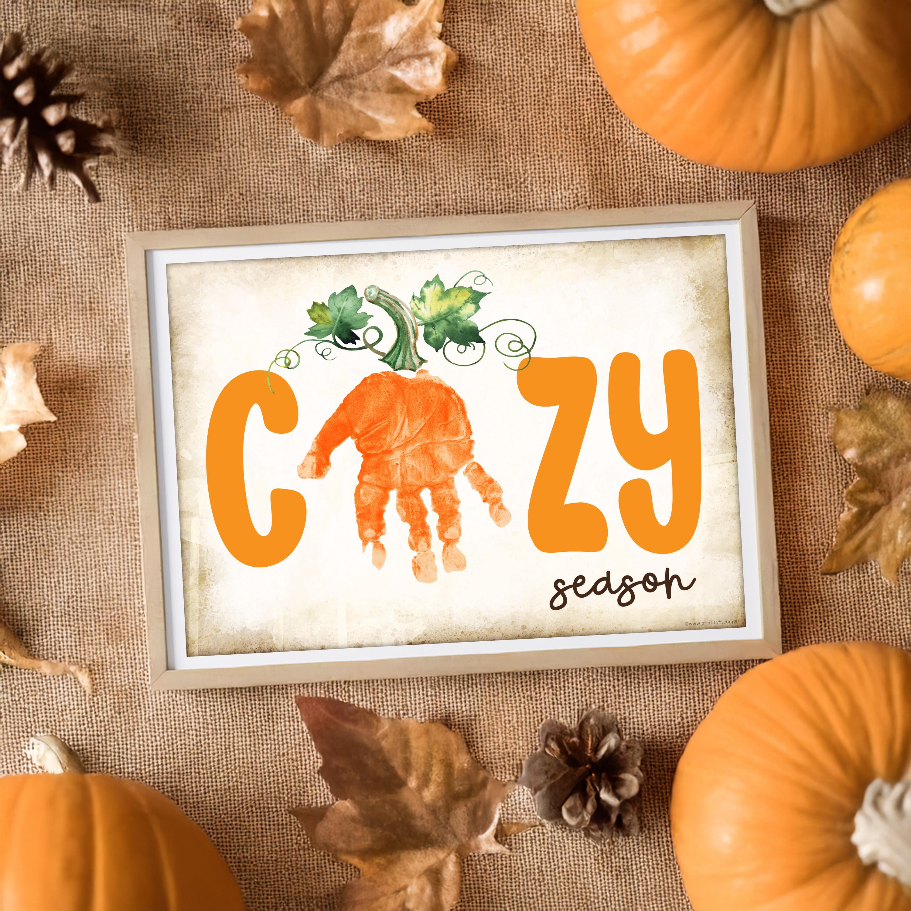 Cozy Season Fall Autumn - Handprint Art Craft Printable Keepsake Gift Template - PRINT IT OFF 0973