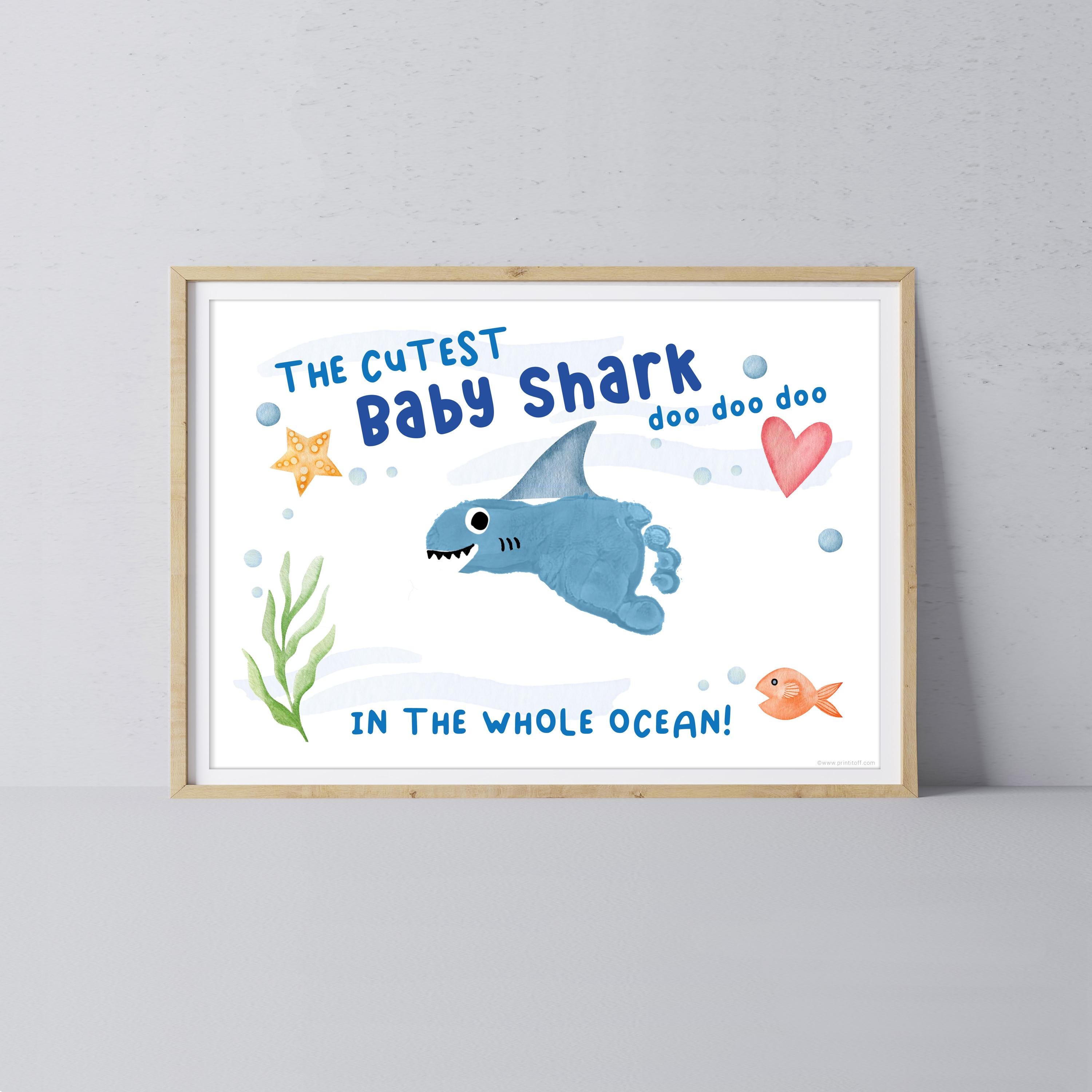 Cutest Baby Shark - Footprint Art Craft Printable Keepsake Gift Template - PRINT IT OFF 0954