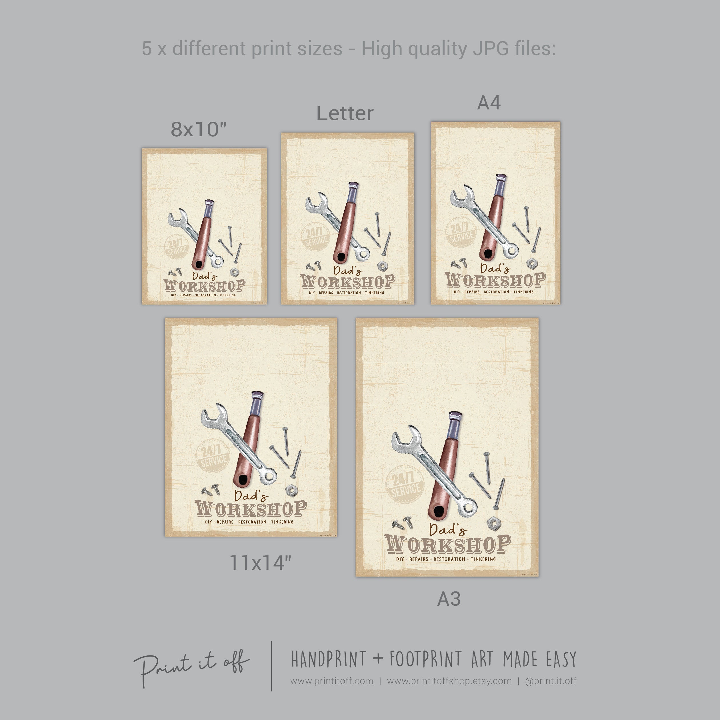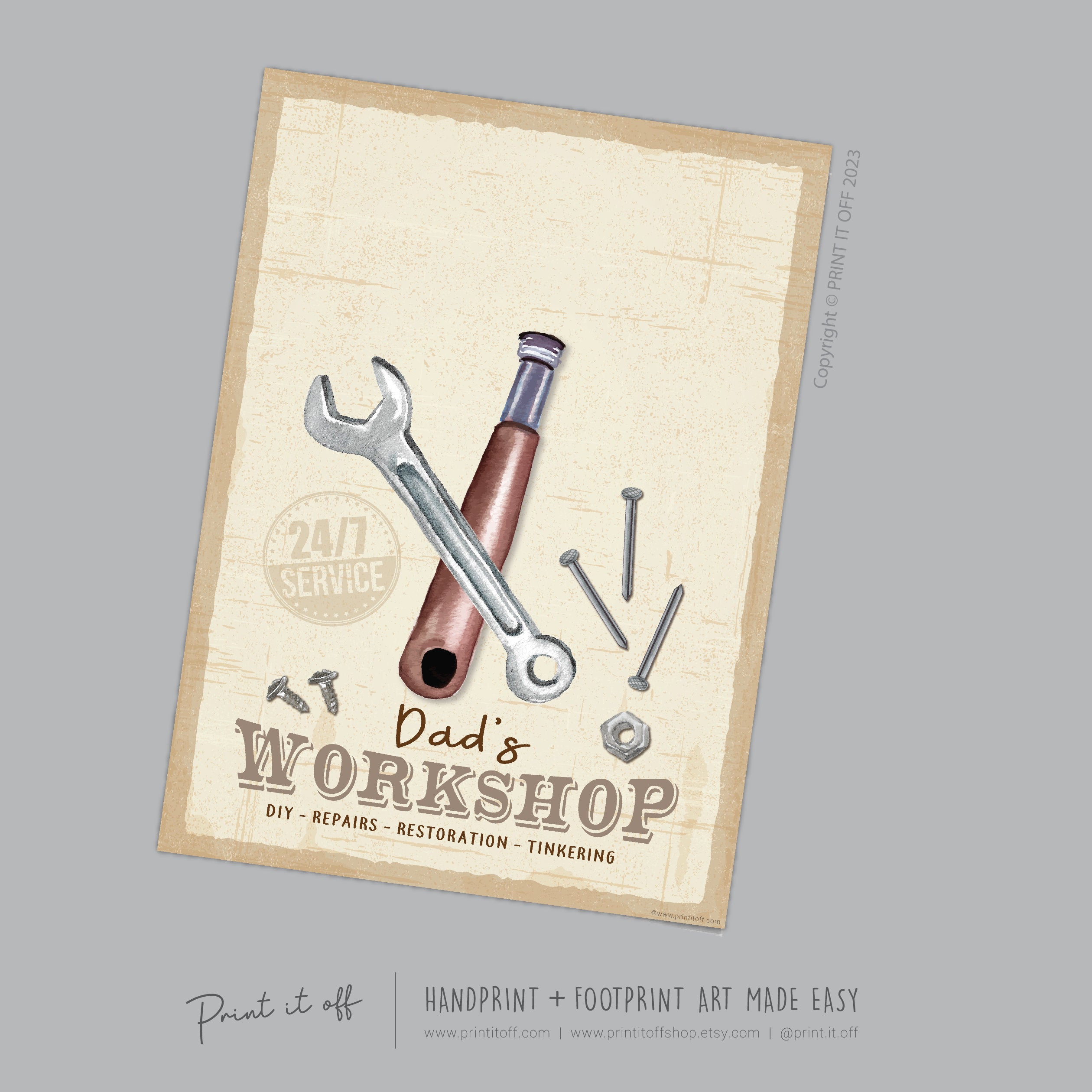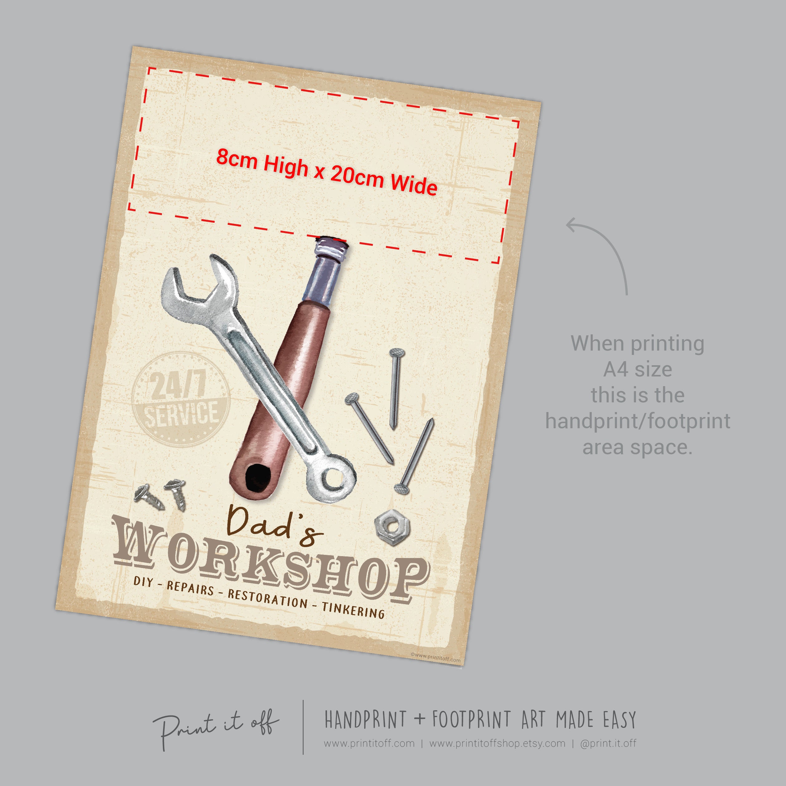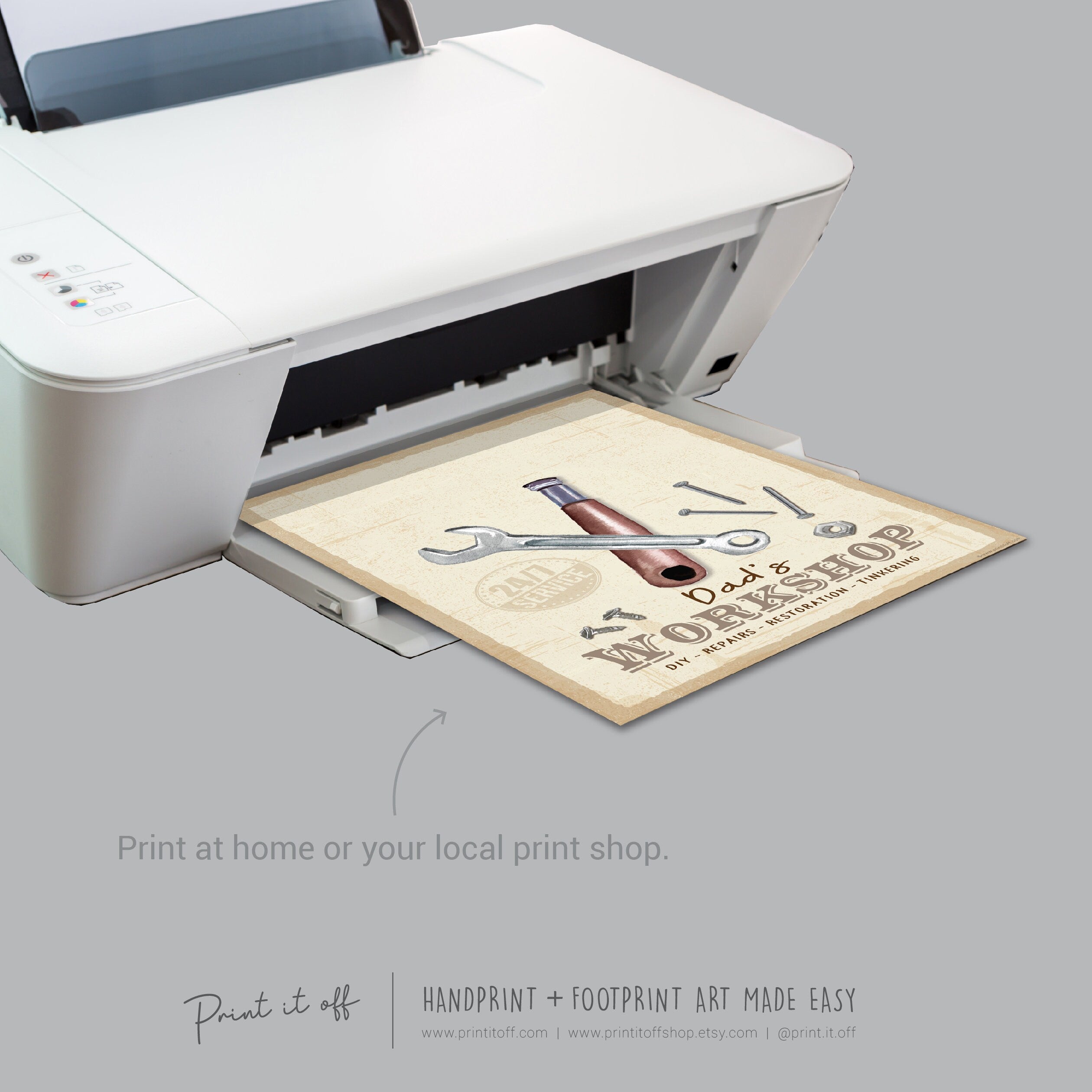 Dad's Workshop Sign Footprint Foot Art Craft / Father's Day Birthday Dad / Kids Baby Toddler / Keepsake Craft DIY Print It Off 0744