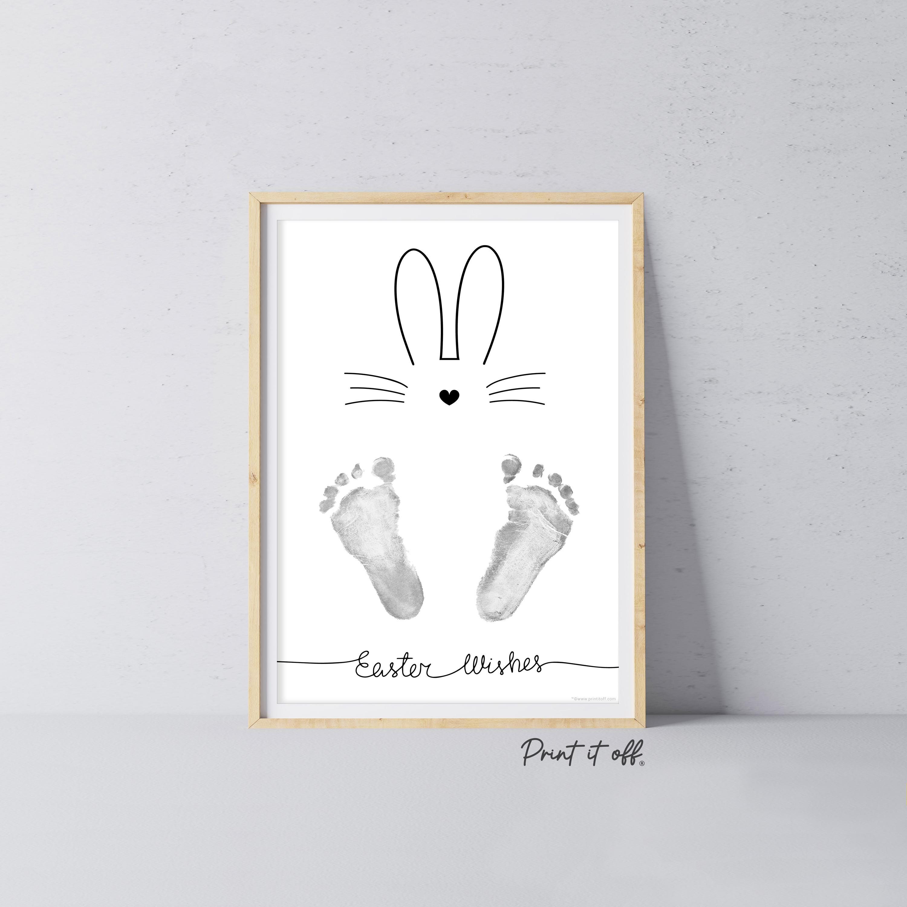 My First 1st Easter / Footprint Minimal Art / Bunny Feet Foot / Kids Baby Toddler / Keepsake Memory Craft Gift Card Print It Off 0935