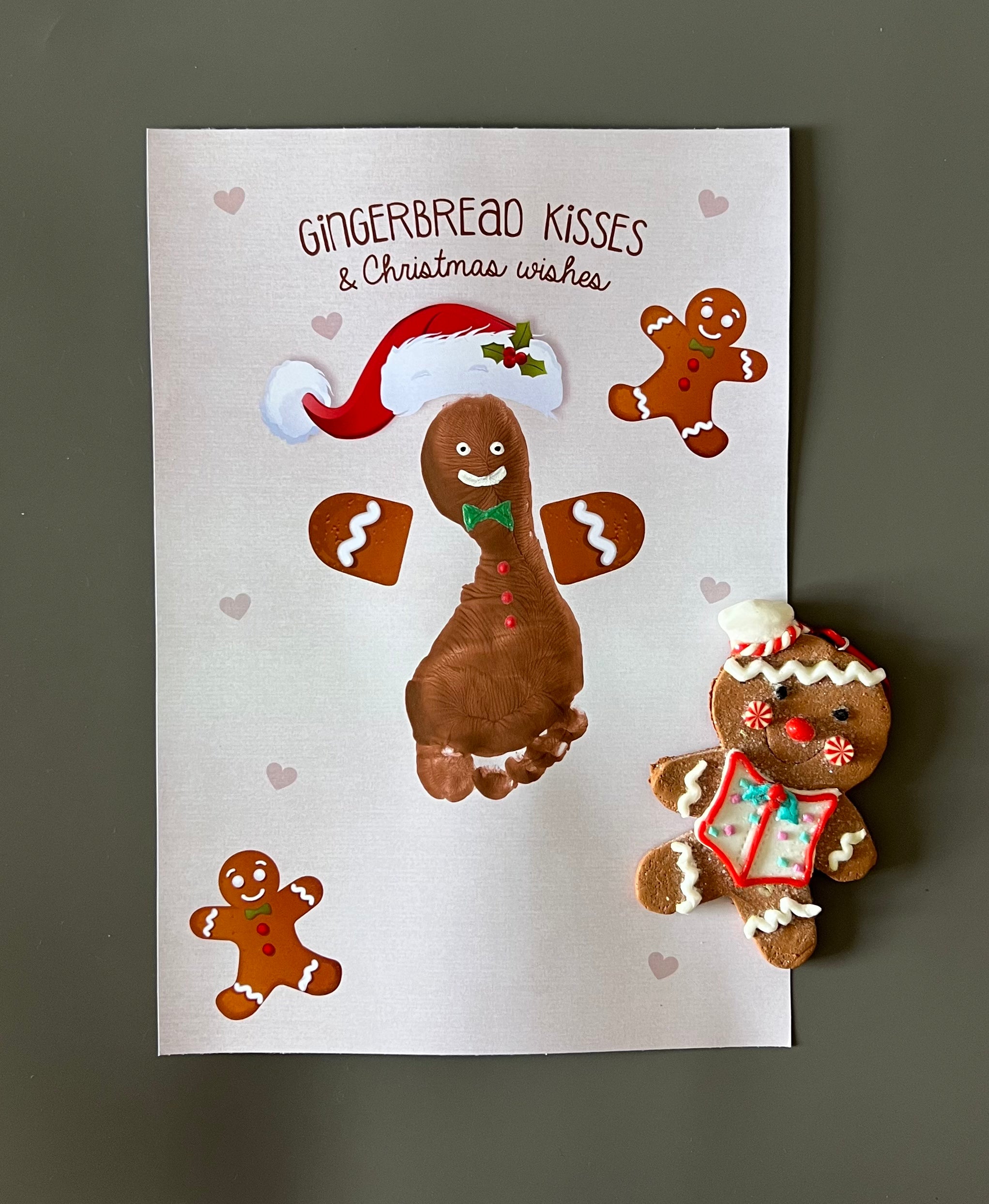 Gingerbread Kisses Christmas - Footprint Art Craft Printable Keepsake Gift Template - PRINT IT OFF 0663