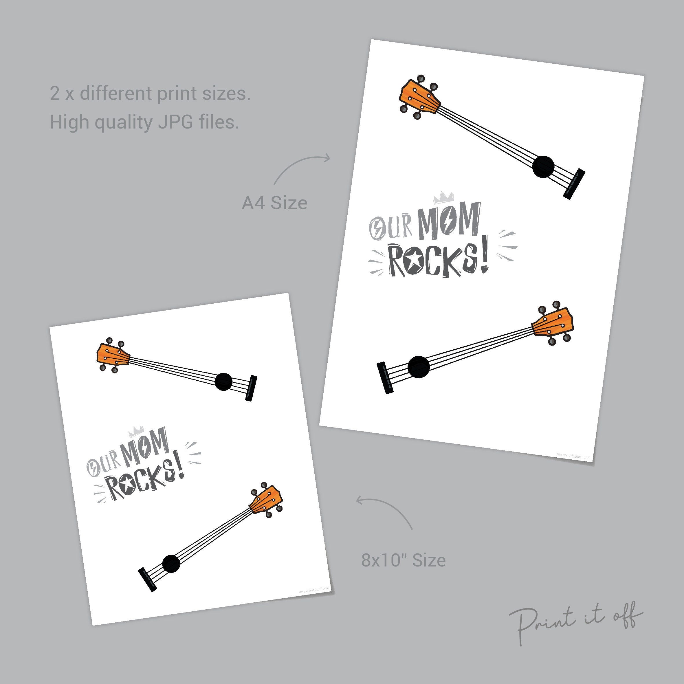 Handprint Art Craft / Our Mom Rocks Guitar / Mother's Day Birthday / Kids Baby Toddler / Keepsake Memory DIY Card Gift / Print it Off 0485