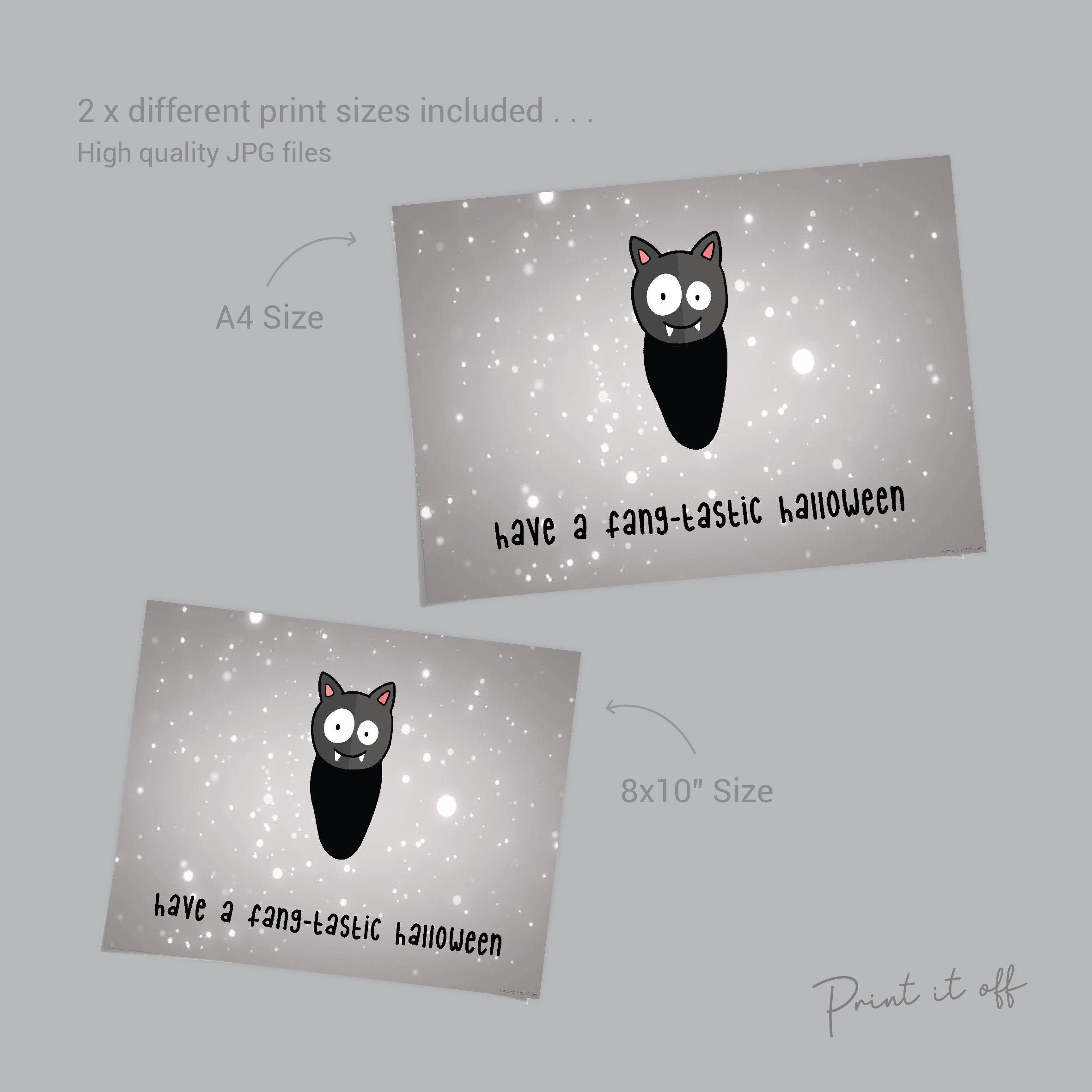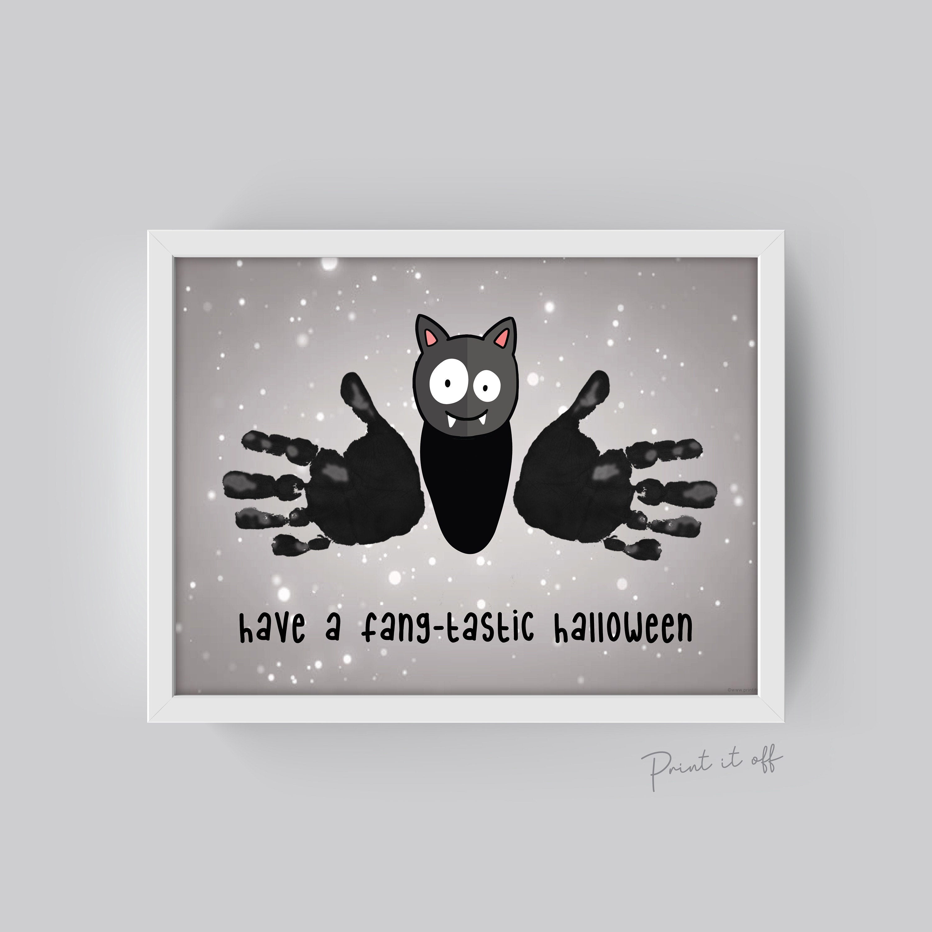 Have a Fang-tastic Halloween / Handprint Art / Bat Happy Halloween / Keepsake / Baby Toddler Kid / Art Craft / Card Print 0066
