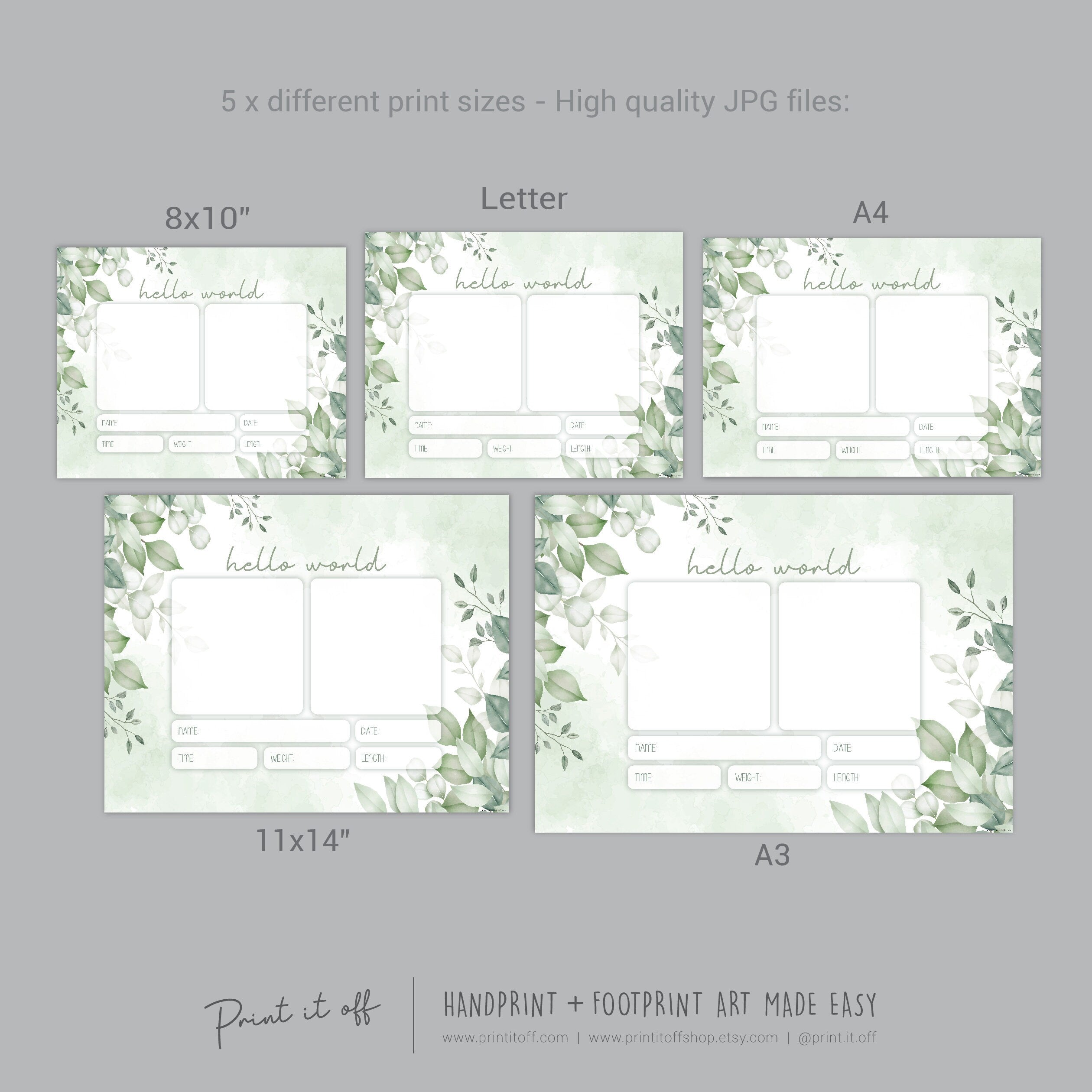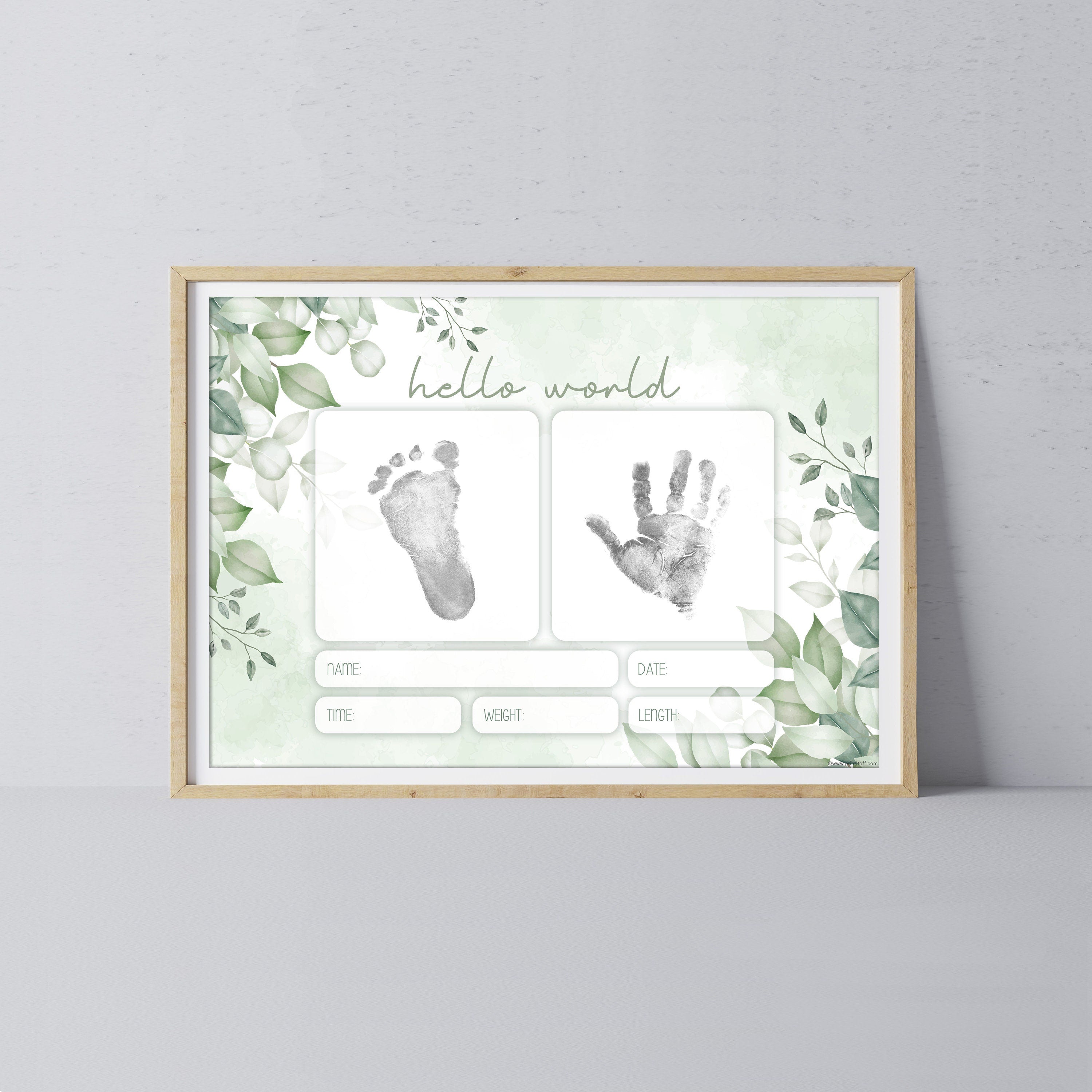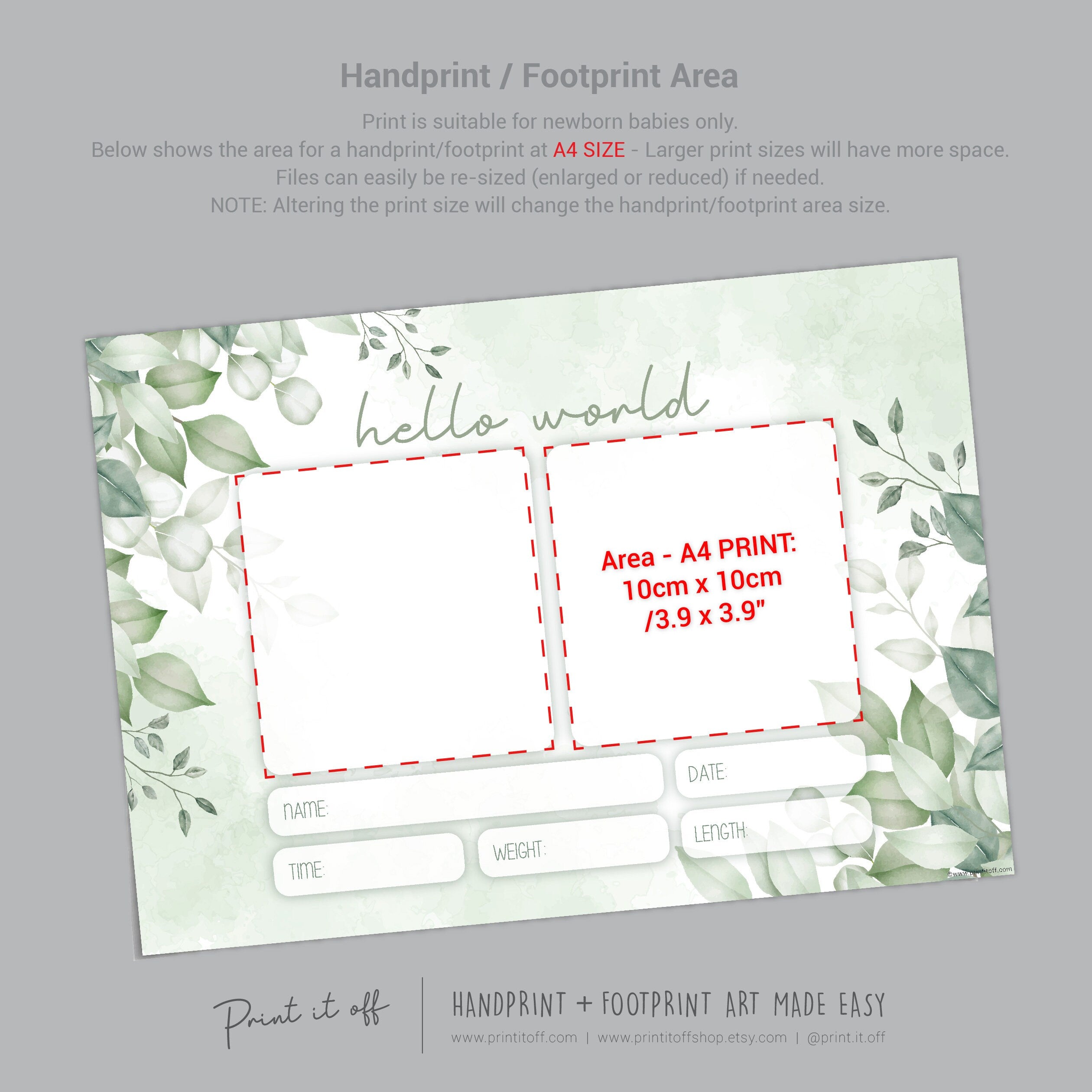 Hello World Handprint Footprint Art / Baby Newborn Announcement Keepsake Girl Boy Nursery Memory Sign / Print It Off 0783