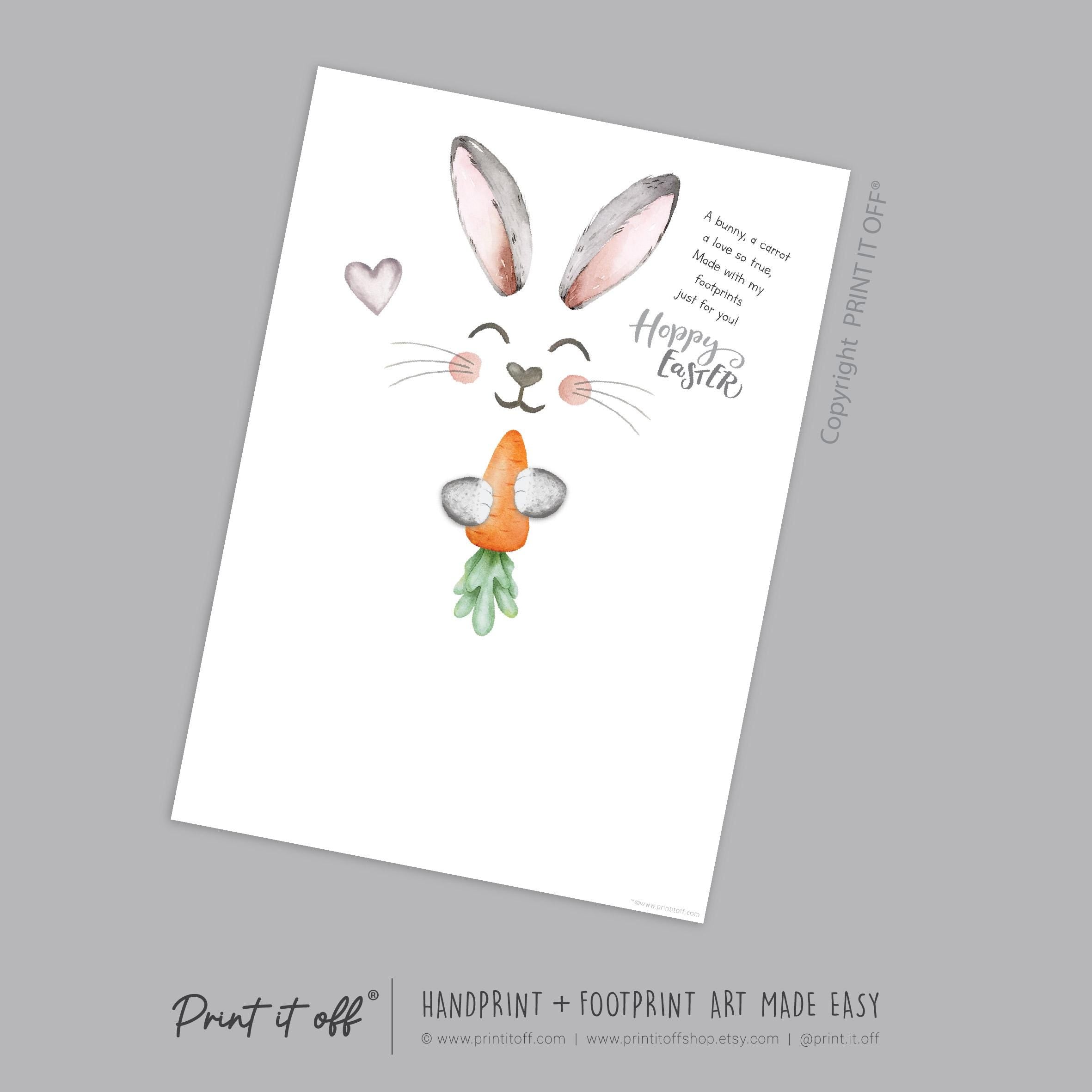 Hoppy Easter / Footprint Art / Cute Bunny Feet Foot Carrot Happy Poem / Kids Baby Toddler / Keepsake Craft DIY Gift Card Print It Off 0926