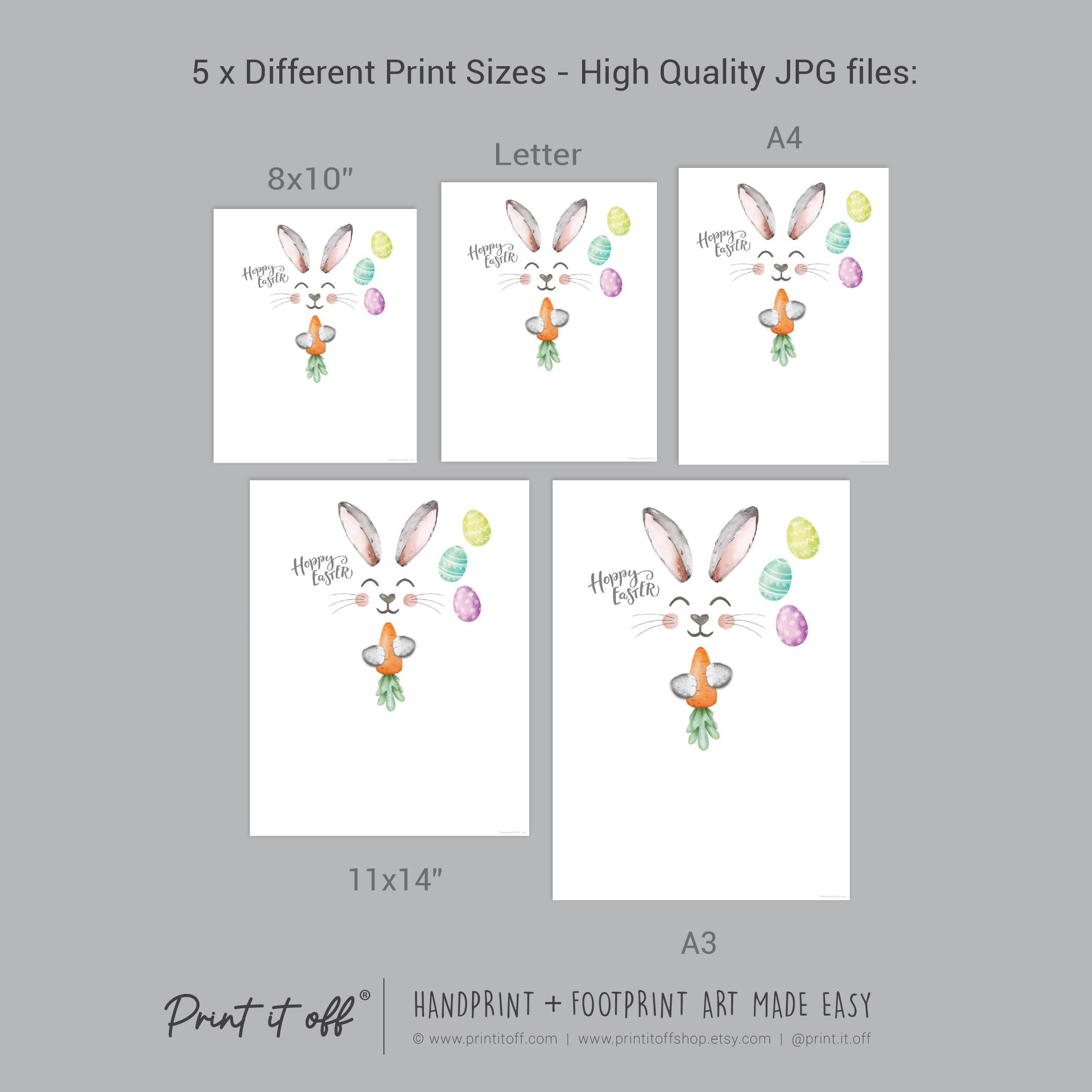 Hoppy Easter / Footprint Handprint Art / Bunny Feet Foot Carrot / Kids Baby Toddler / Keepsake Memory Craft DIY Gift Card Print It Off 0933
