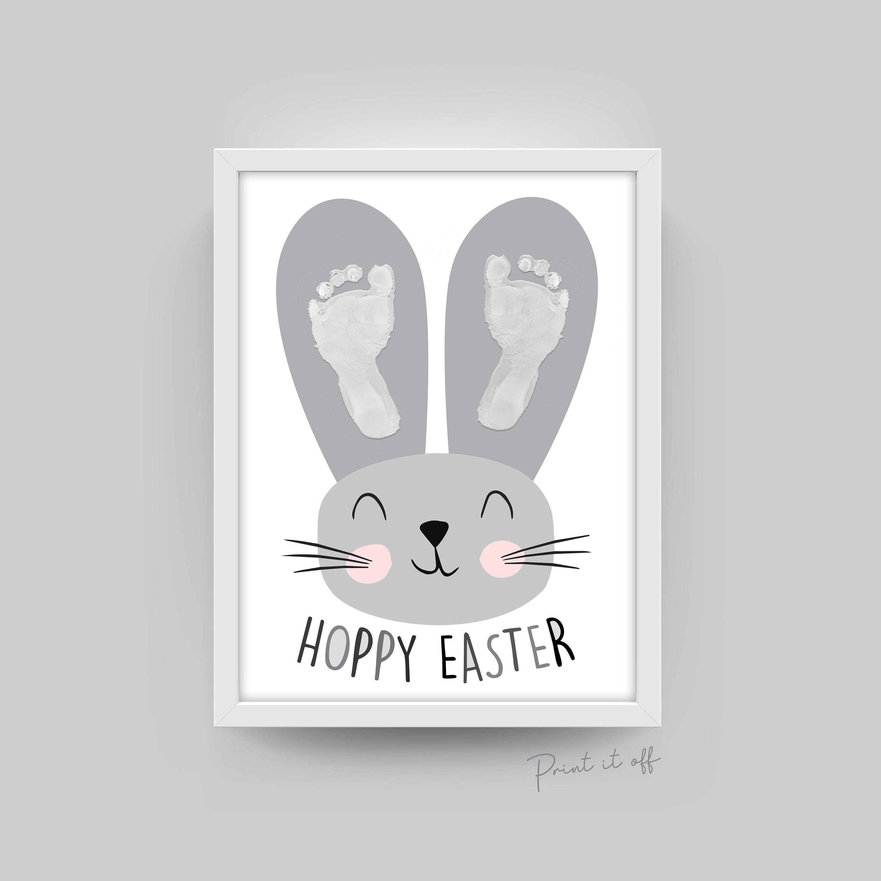 Hoppy Easter / Footprint Handprint Art Craft / Cute Bunny Feet / Happy Easter / Kids Baby Toddler / Keepsake Gift Card / PRINT IT OFF 0411