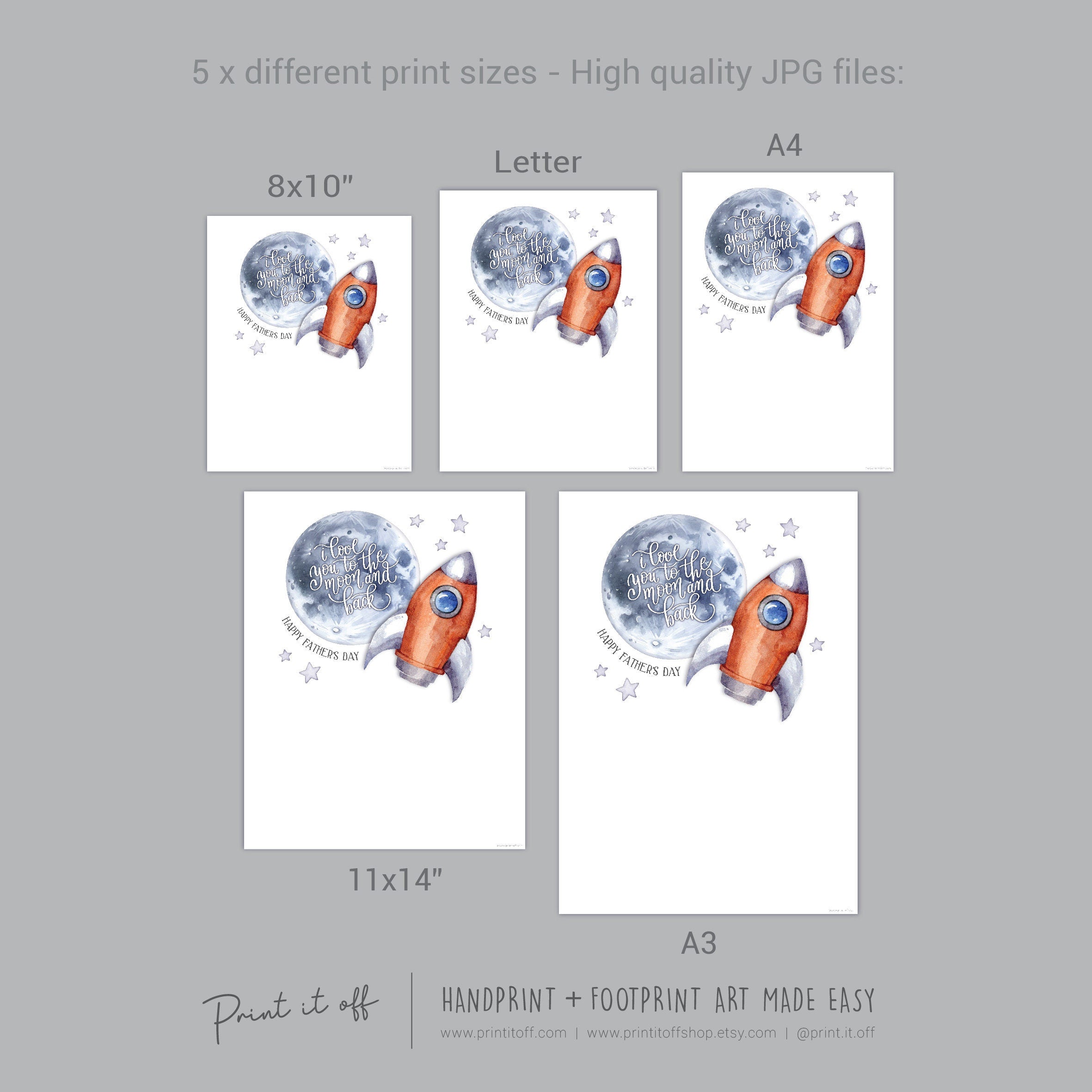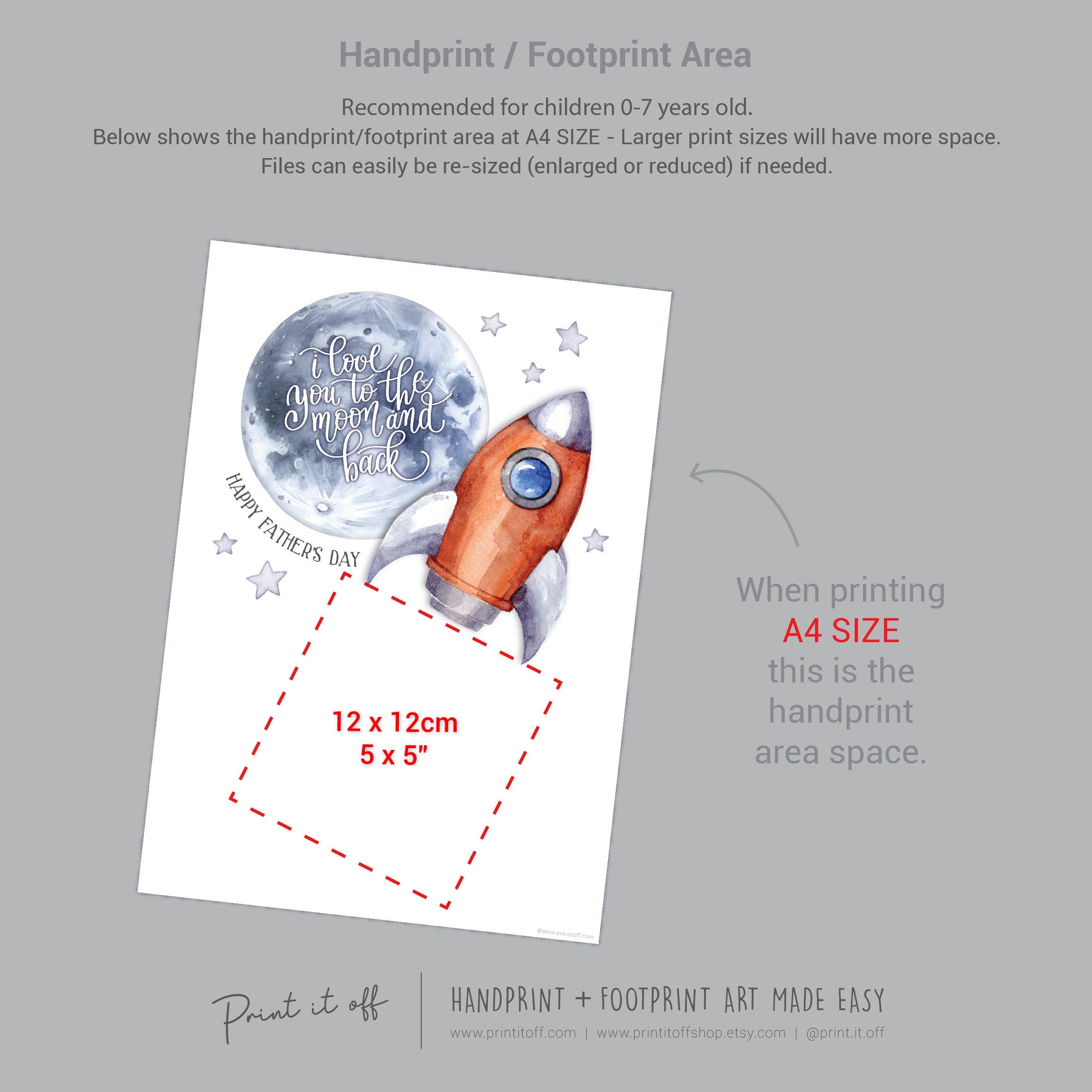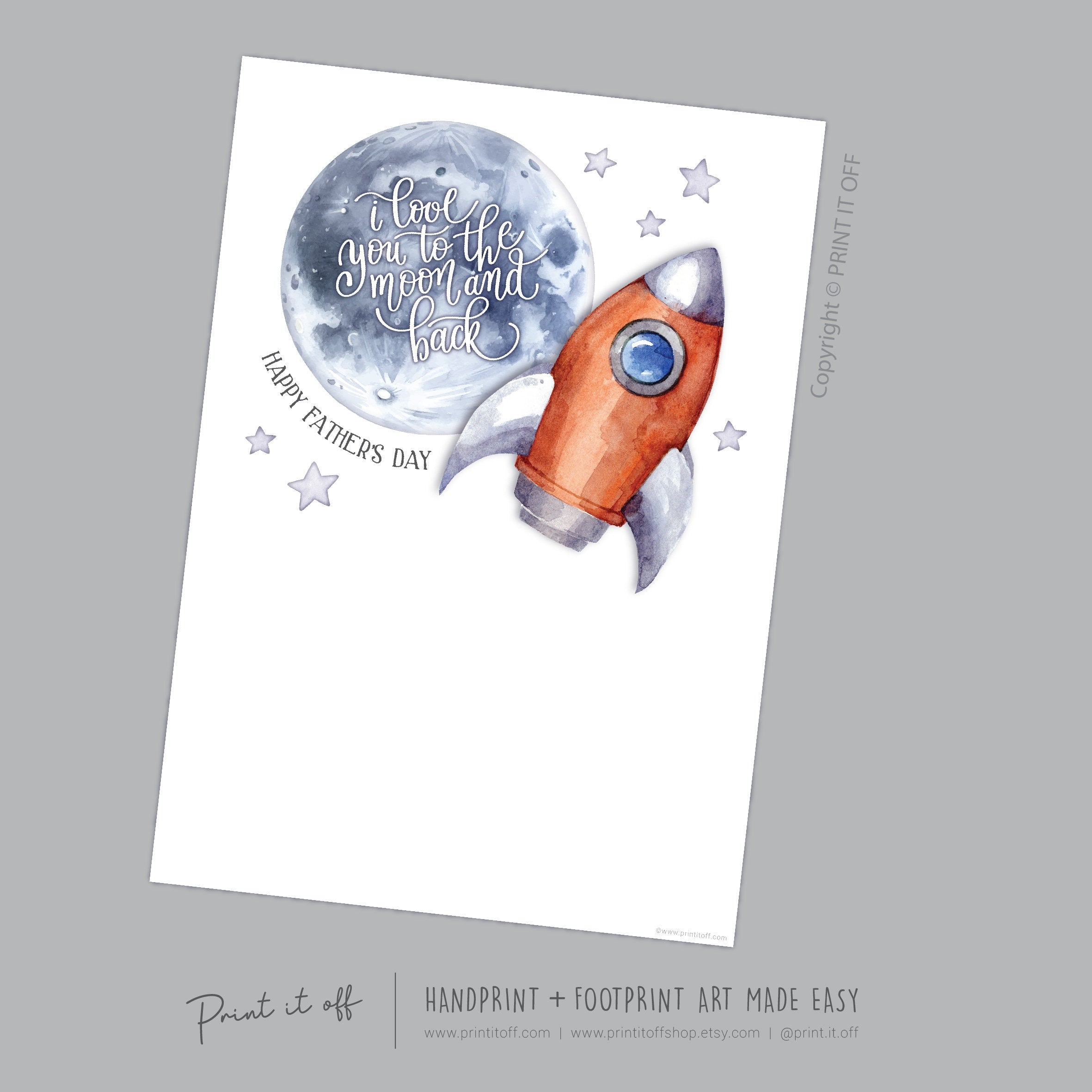 Love You Moon and Back Rocket Fathers Day / Handprint Footprint Art Craft / DIY Card Gift Keepsake / Kids Baby Toddler / Print it Off 0882