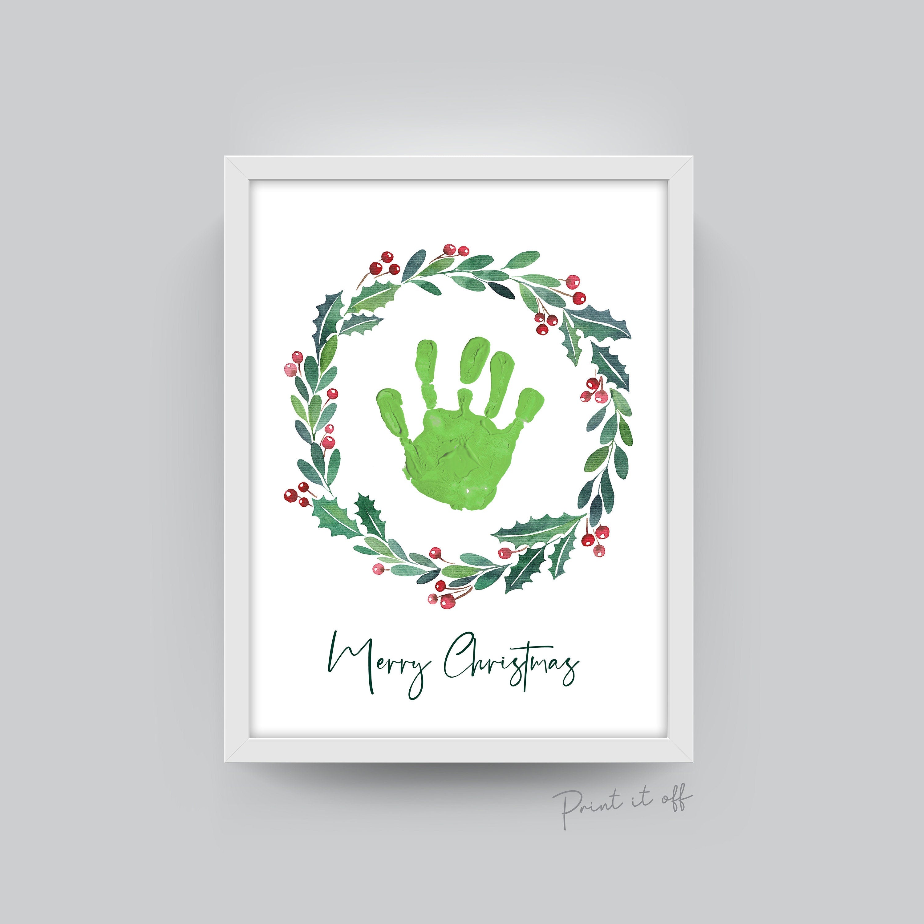Merry Christmas Wreath / Handprints Footprints / Christmas Xmas Art / Printable / Baby Toddler Feet Hands / Xmas Craft Keepsake 0133