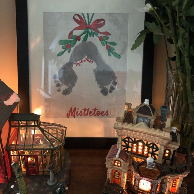 Mistletoes Mistle-Toes Footprint Art / Christmas Xmas / Kids Baby Toddler Art / Xmas Craft Card Keepsake Decor Print 0029