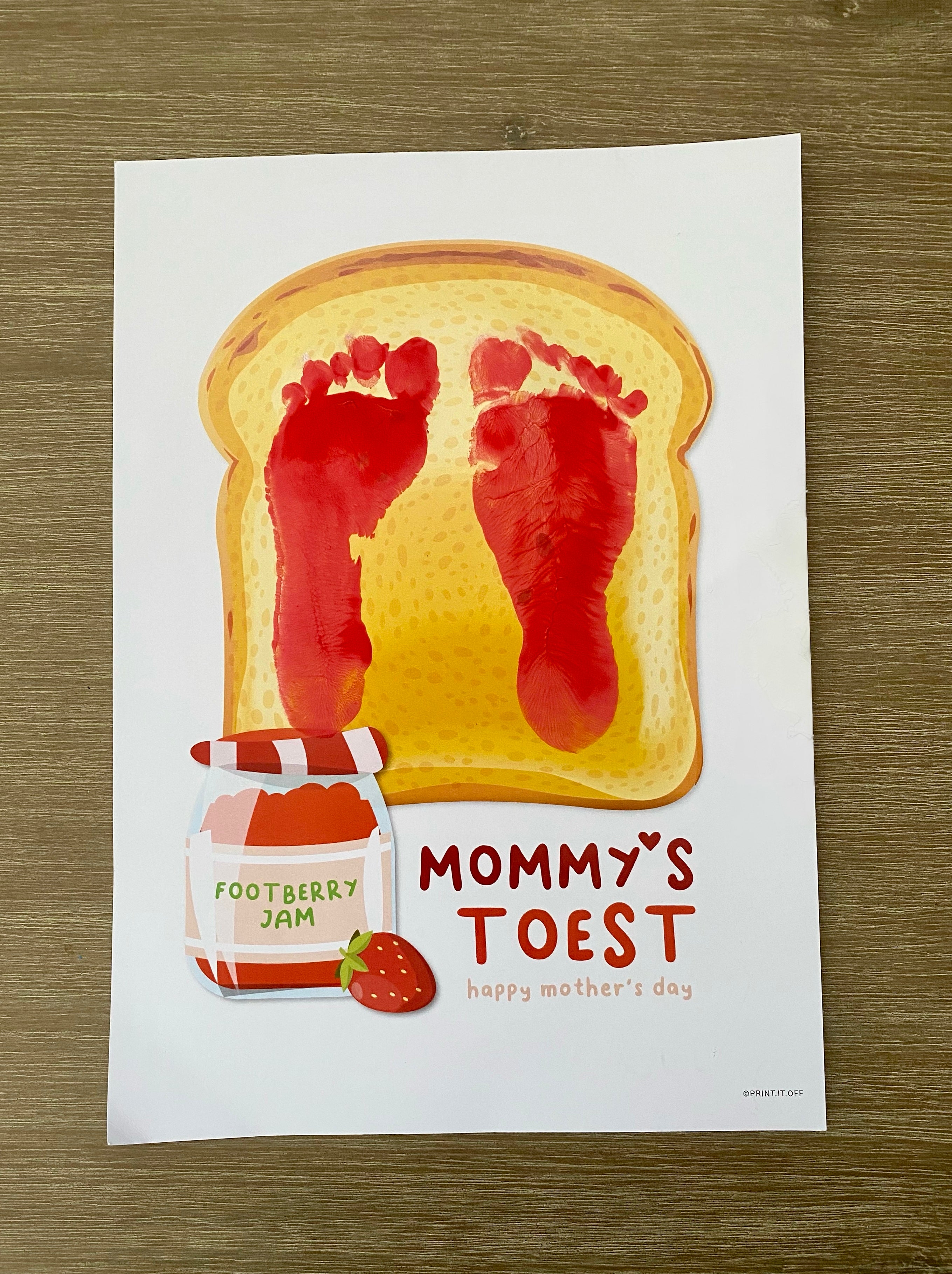 Mommy's Toest / Happy Mother's Day Mom / Footprint Feet Toes Art / Keepsake Baby Toddler Gift Card Craft Diy / Footprint PRINT IT OFF 0225