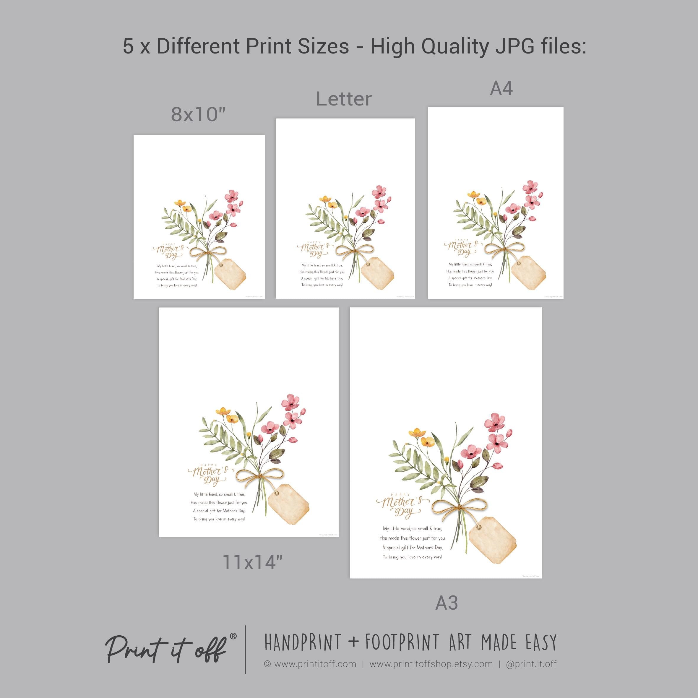 Mother's Day Handprint Tag Poem / Hand Flower Mom Mum Grandma / Keepsake Memory Craft Gift Card / Print It Off 0942