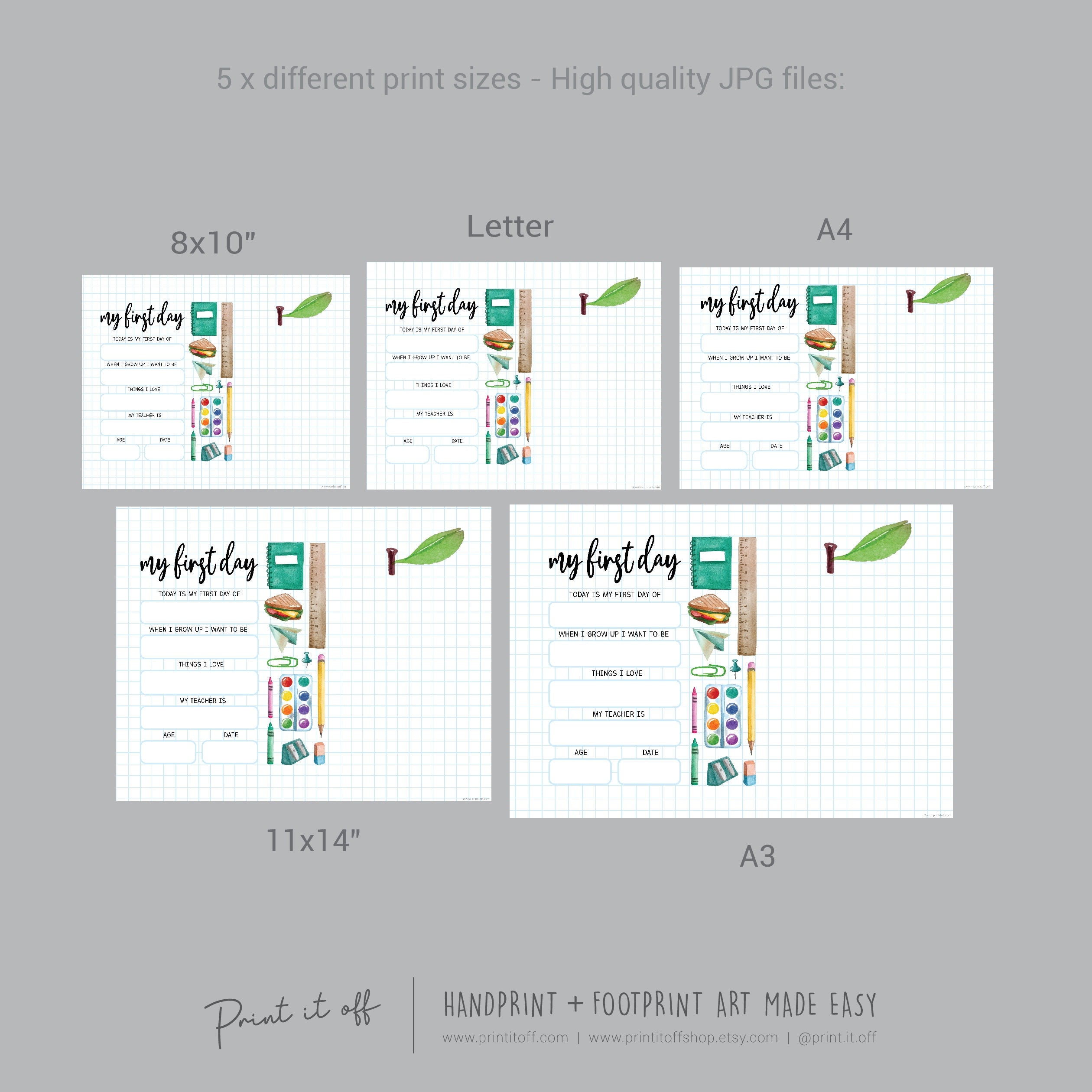 My 1st First Day School / Kindergarten Pre-K Daycare Pre-School / Handprint DIY Art Craft / Board Sign Template Teacher / Print it Off 0759