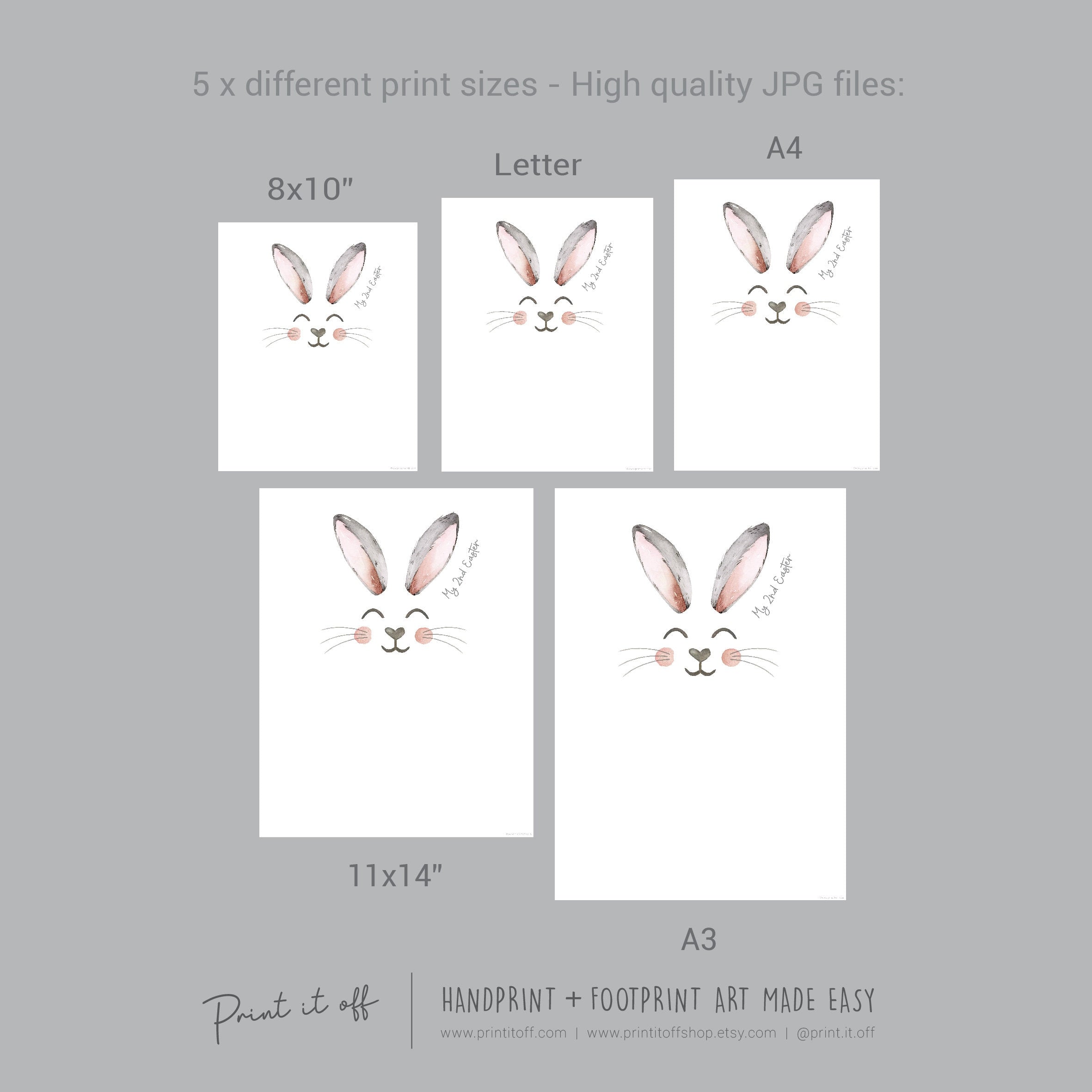 My 2nd Second Easter / Footprint Handprint Art / Cute Bunny Happy Easter / Baby Toddler / Keepsake Memory Craft DIY Card / Print It Off 0847