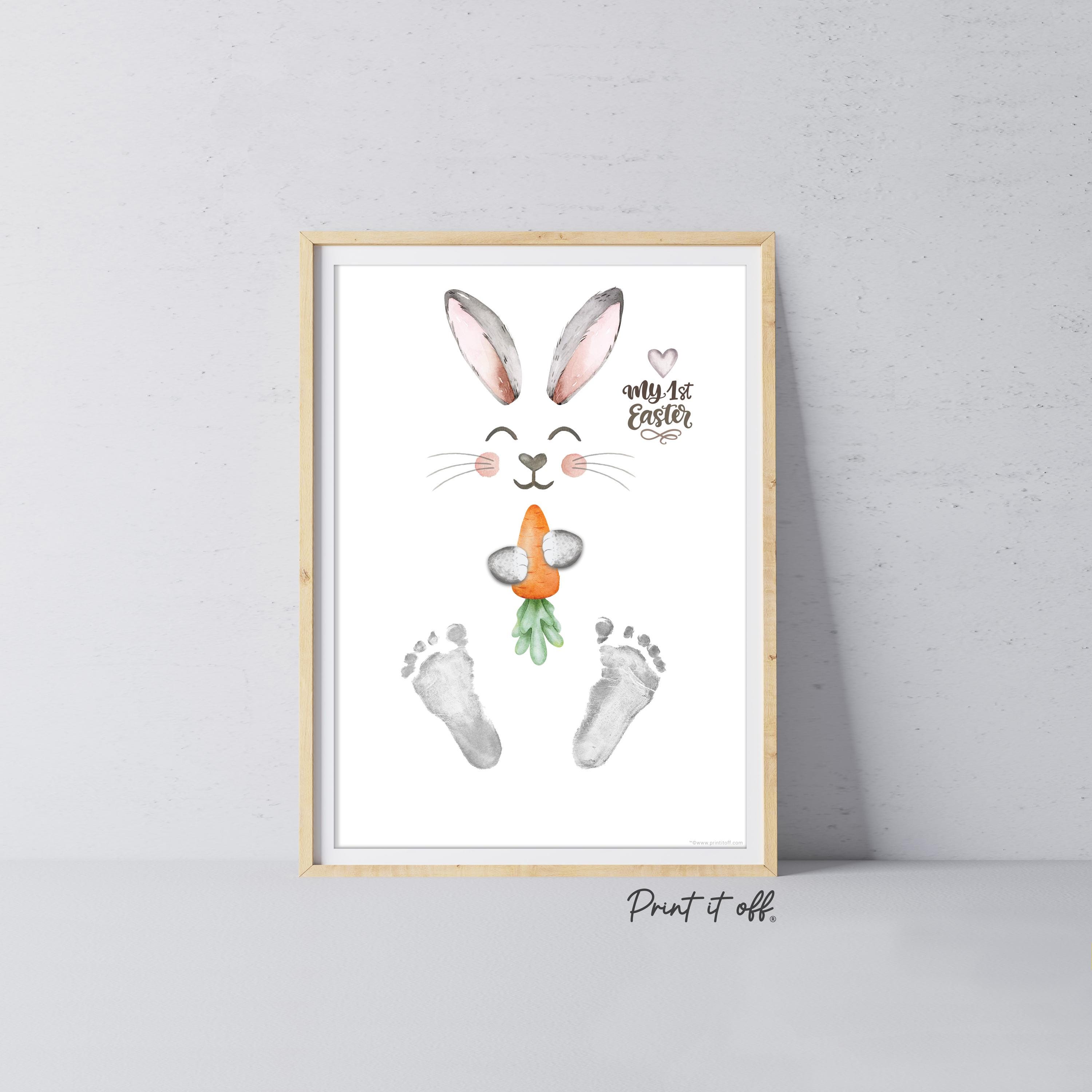 First 1st Easter / Footprint Handprint Art / Bunny Feet Foot Carrot / Kids Baby Toddler / Keepsake Memory Craft Gift Card Print It Off 0931