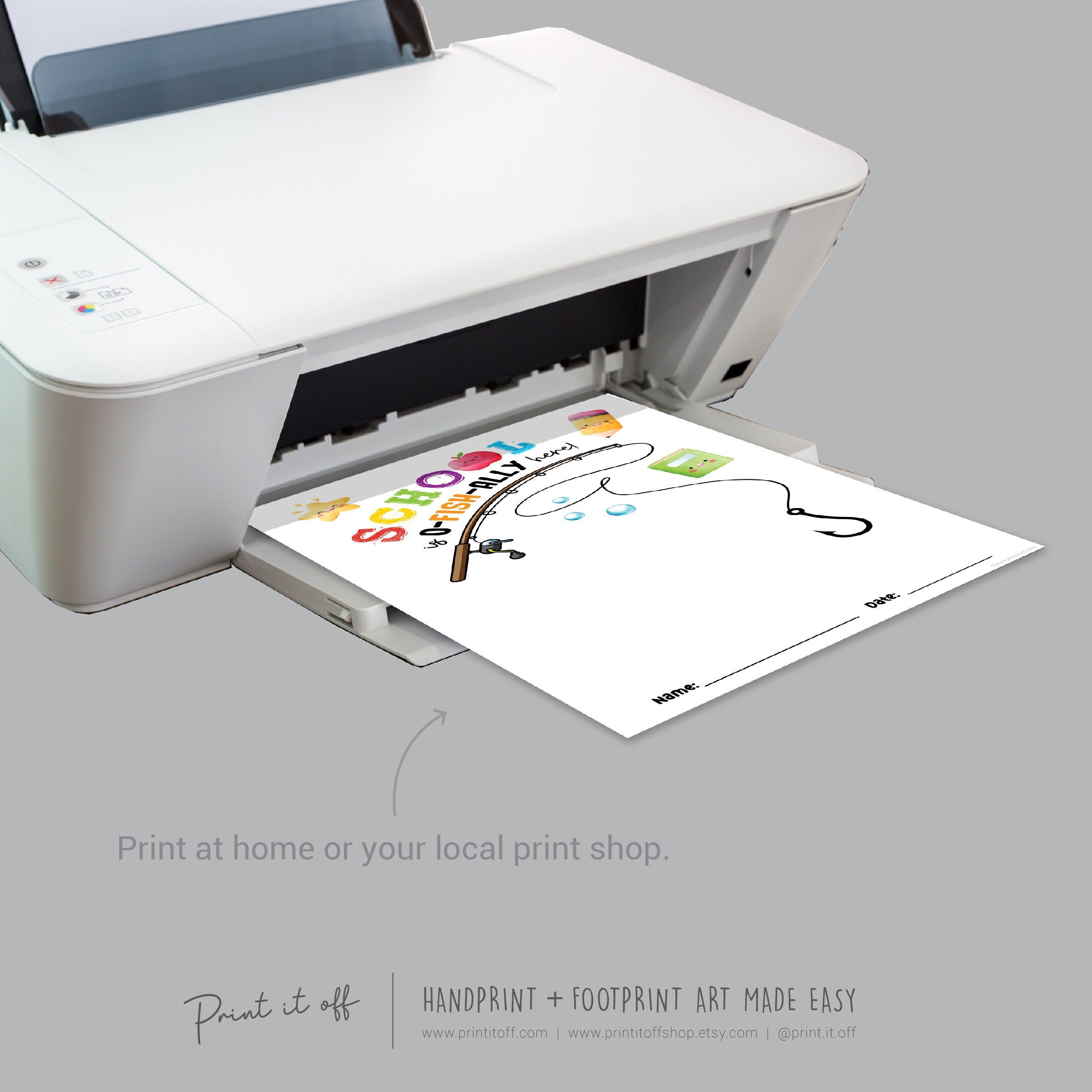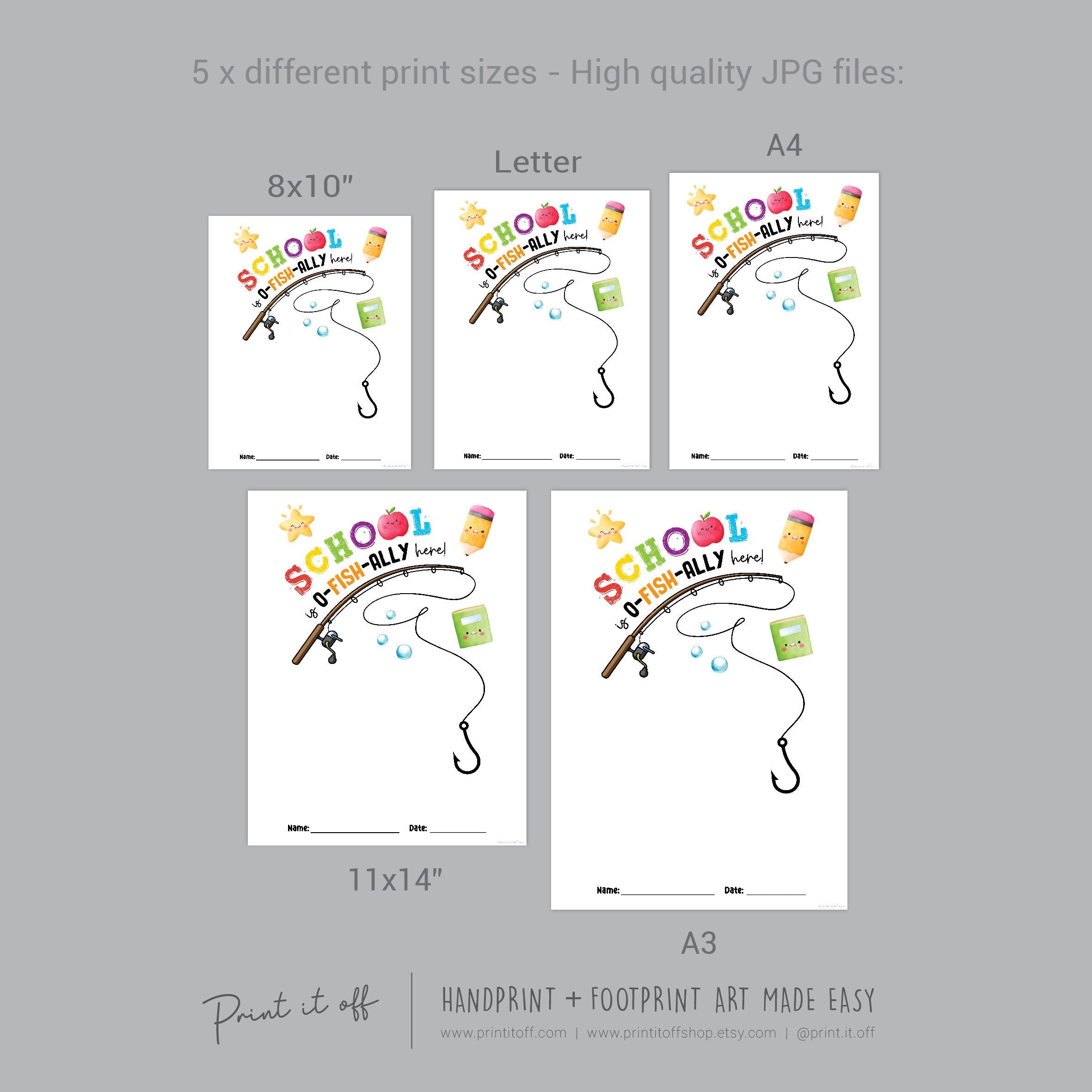 Fish First Day School - Handprint Art Craft Printable Keepsake Gift Template - PRINT IT OFF 0895