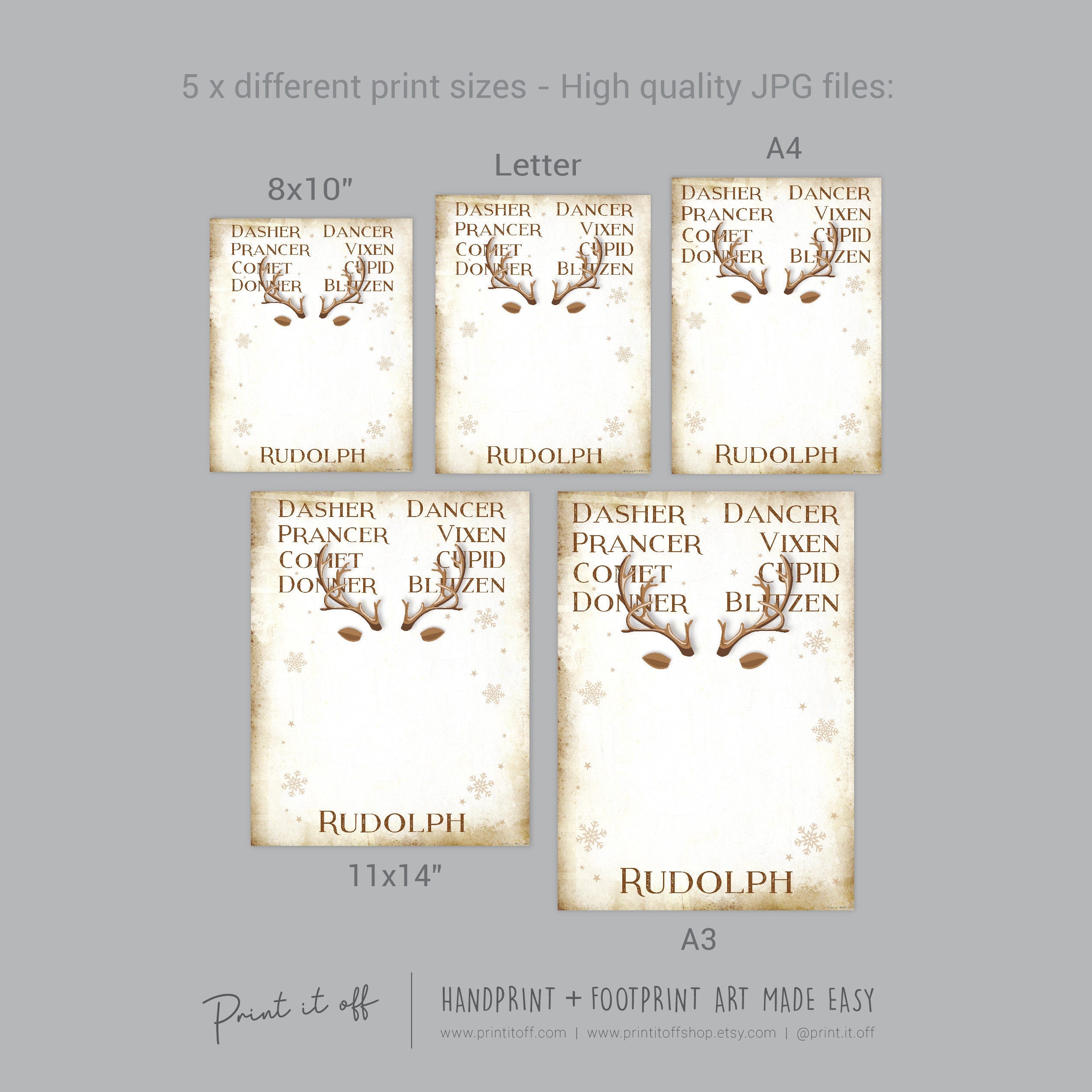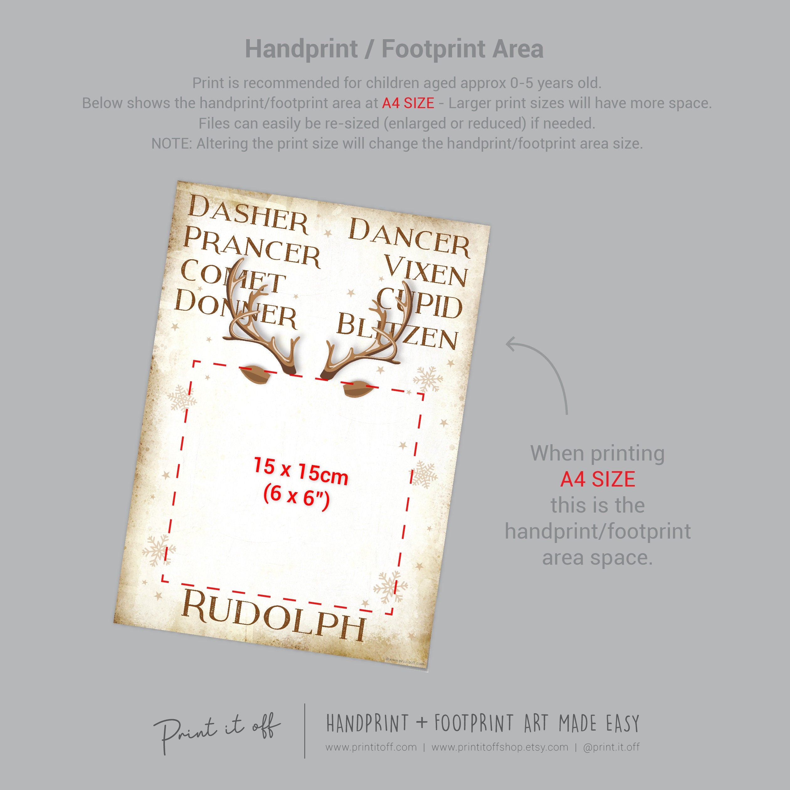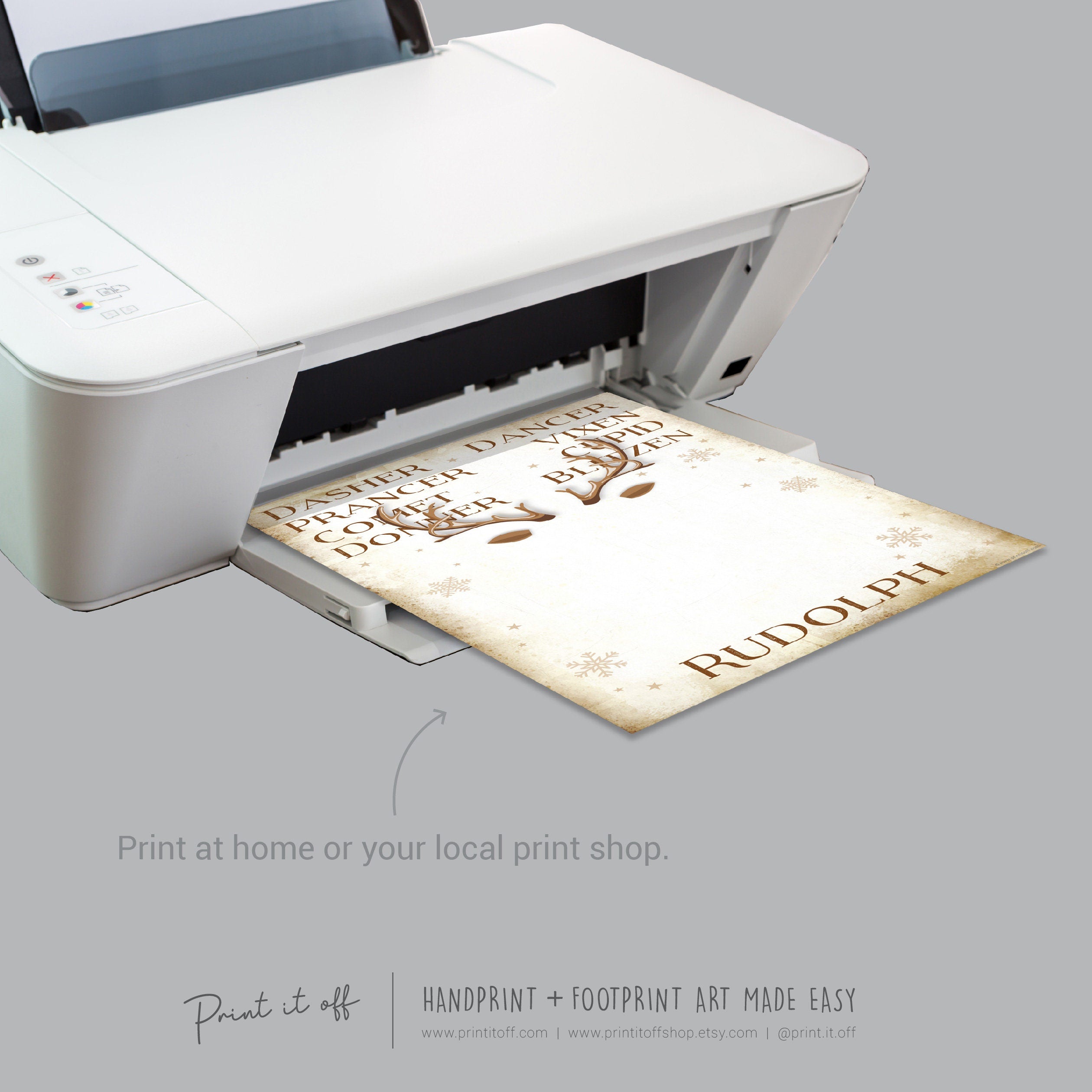 Reindeer Names Rudolph Handprint Footprint Art Craft / Christmas Xmas Kids Baby Toddler / Keepsake Gift Card Sign Memory PRINT IT OFF 0806