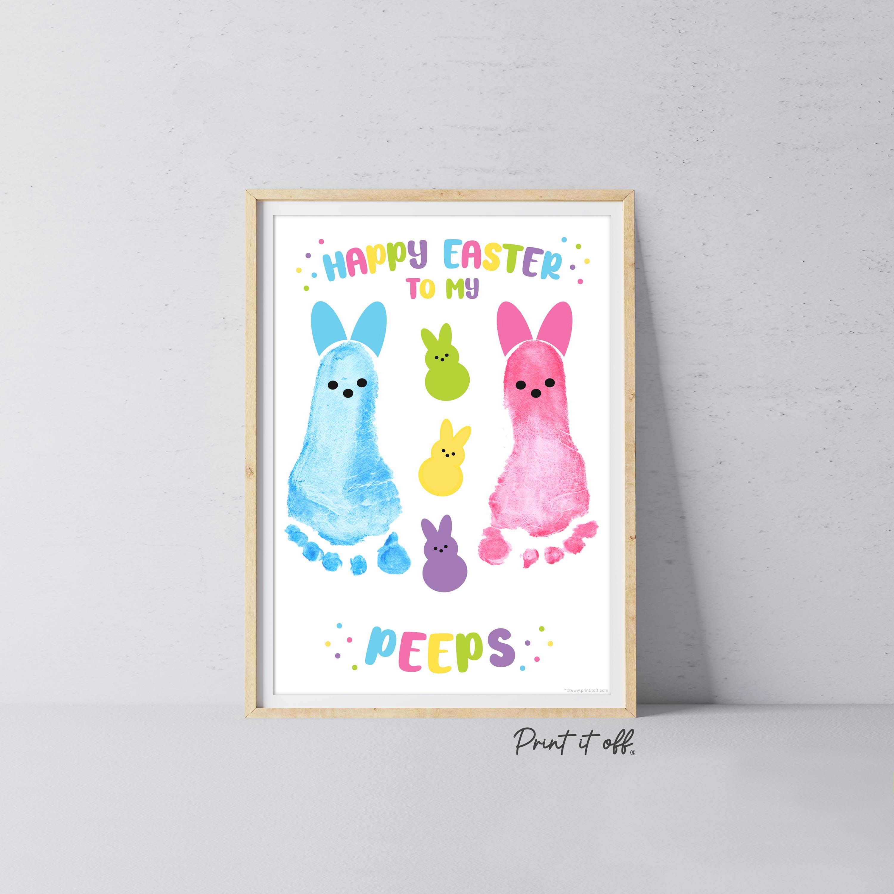 Happy Easter to my Peeps / Footprint Handprint Art / Bunny Feet Foot / Kids Baby Toddler / Keepsake Memory Craft Gift Card Print It Off 0938